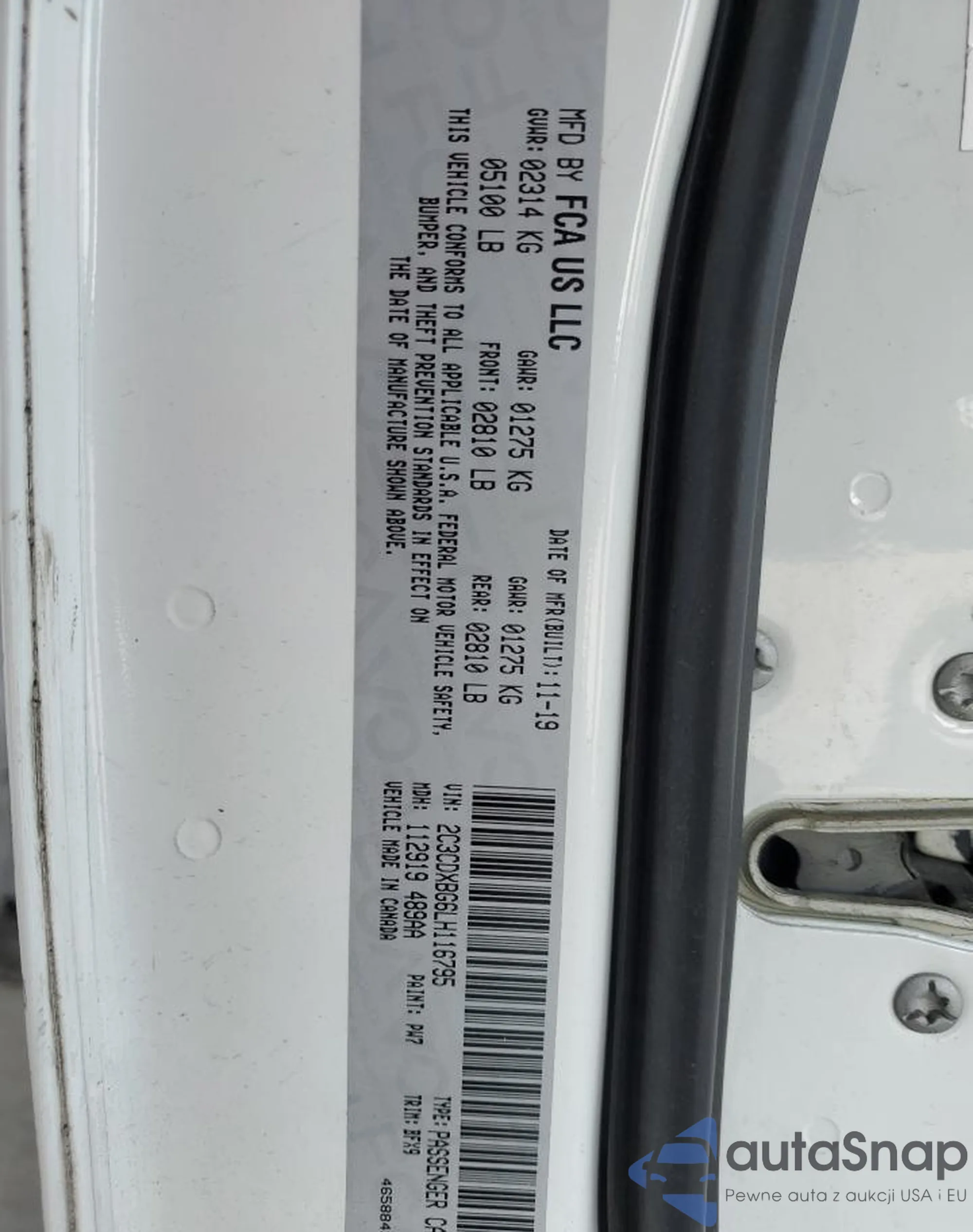 • VIN 2C3CDXBG6LH116795