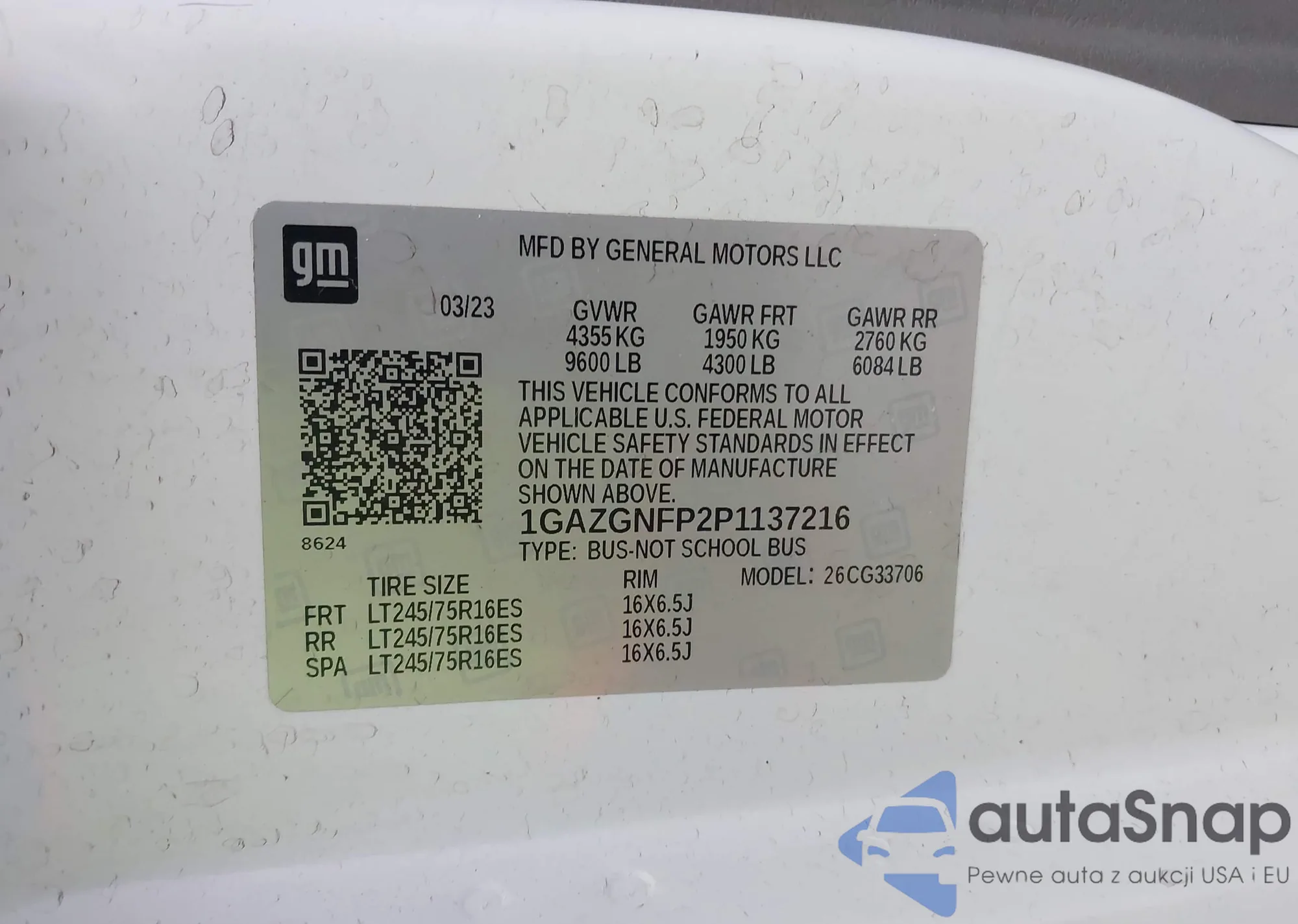 LOT: 41923220 VIN: 1GAZGNFP2P1137216