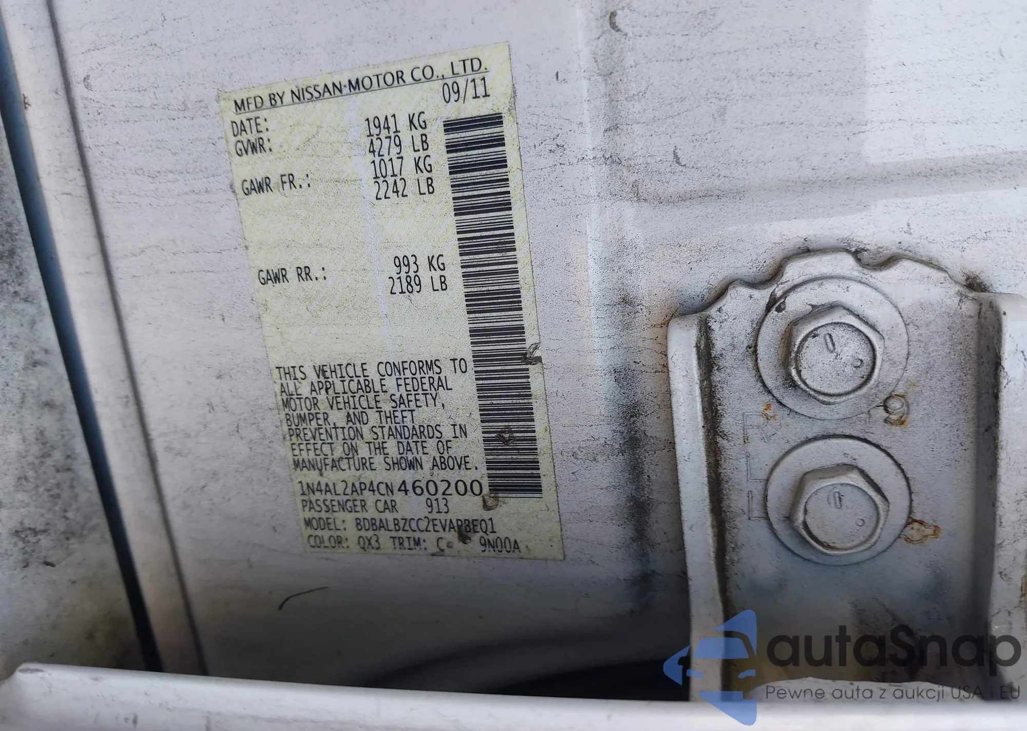 • VIN 1N4AL2AP4CN460200