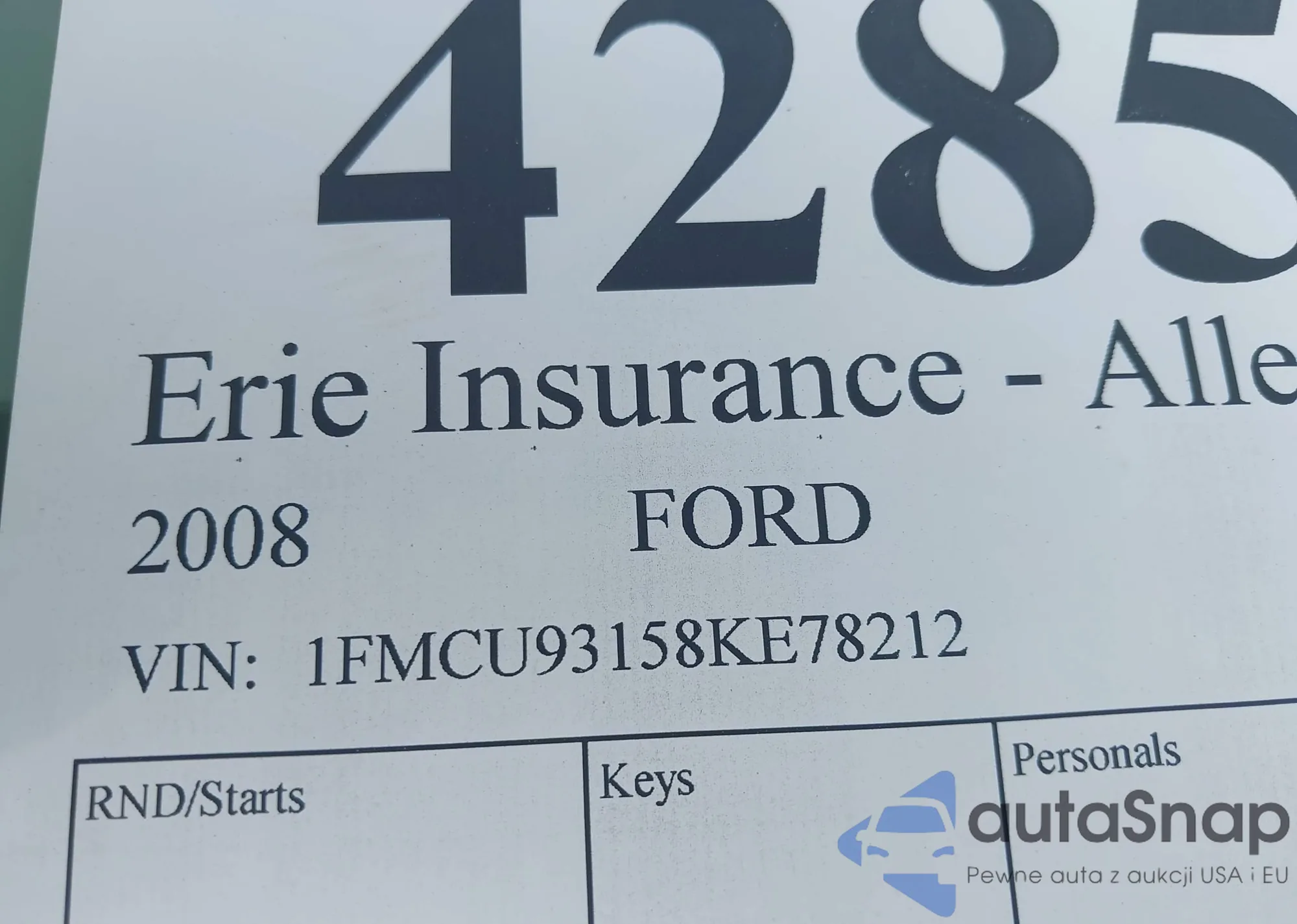 LOT: 42852125 VIN: 1FMCU93158KE78212