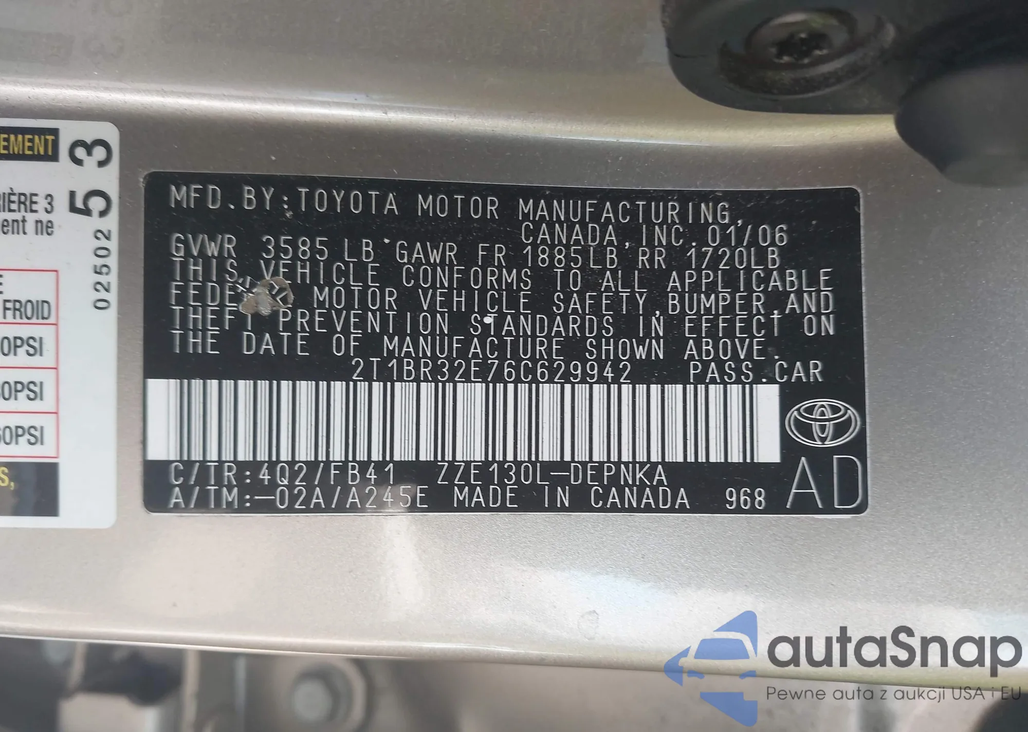 • VIN 2T1BR32E76C629942
