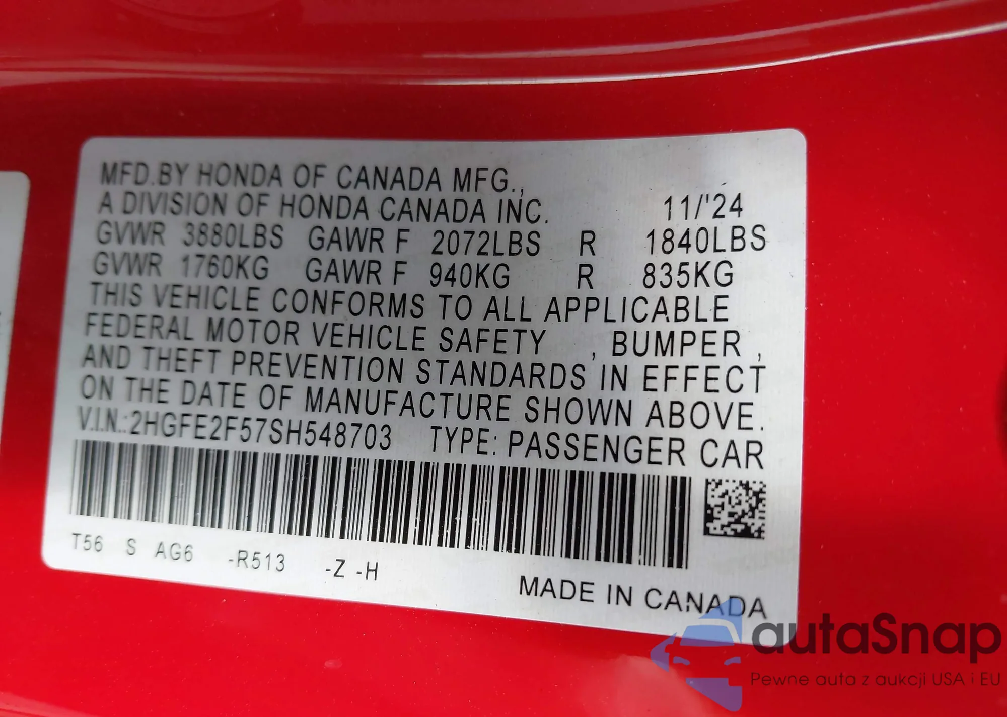 • VIN 2HGFE2F57SH548703