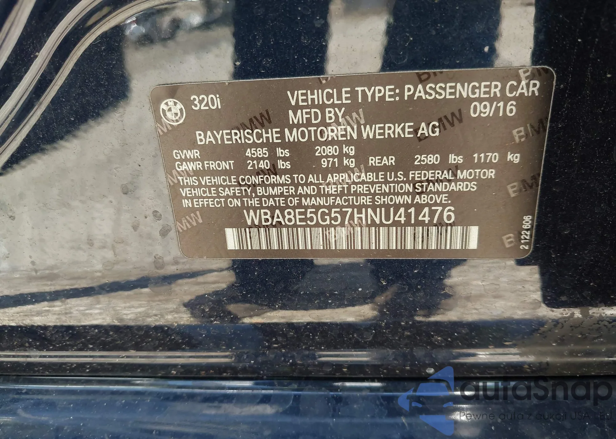 • VIN WBA8E5G57HNU41476