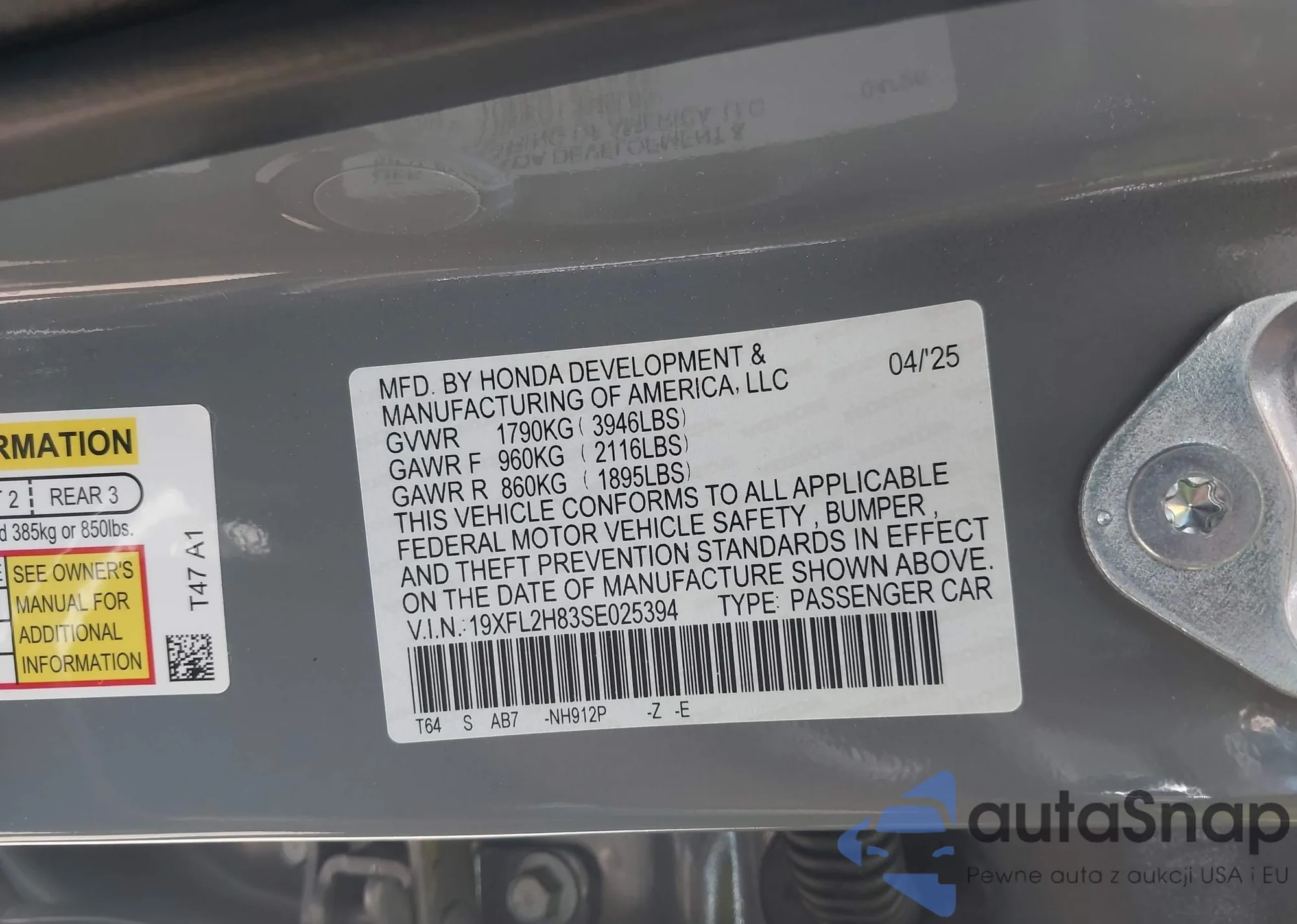LOT: 42496314 VIN: 2HGFE2F57SH548703