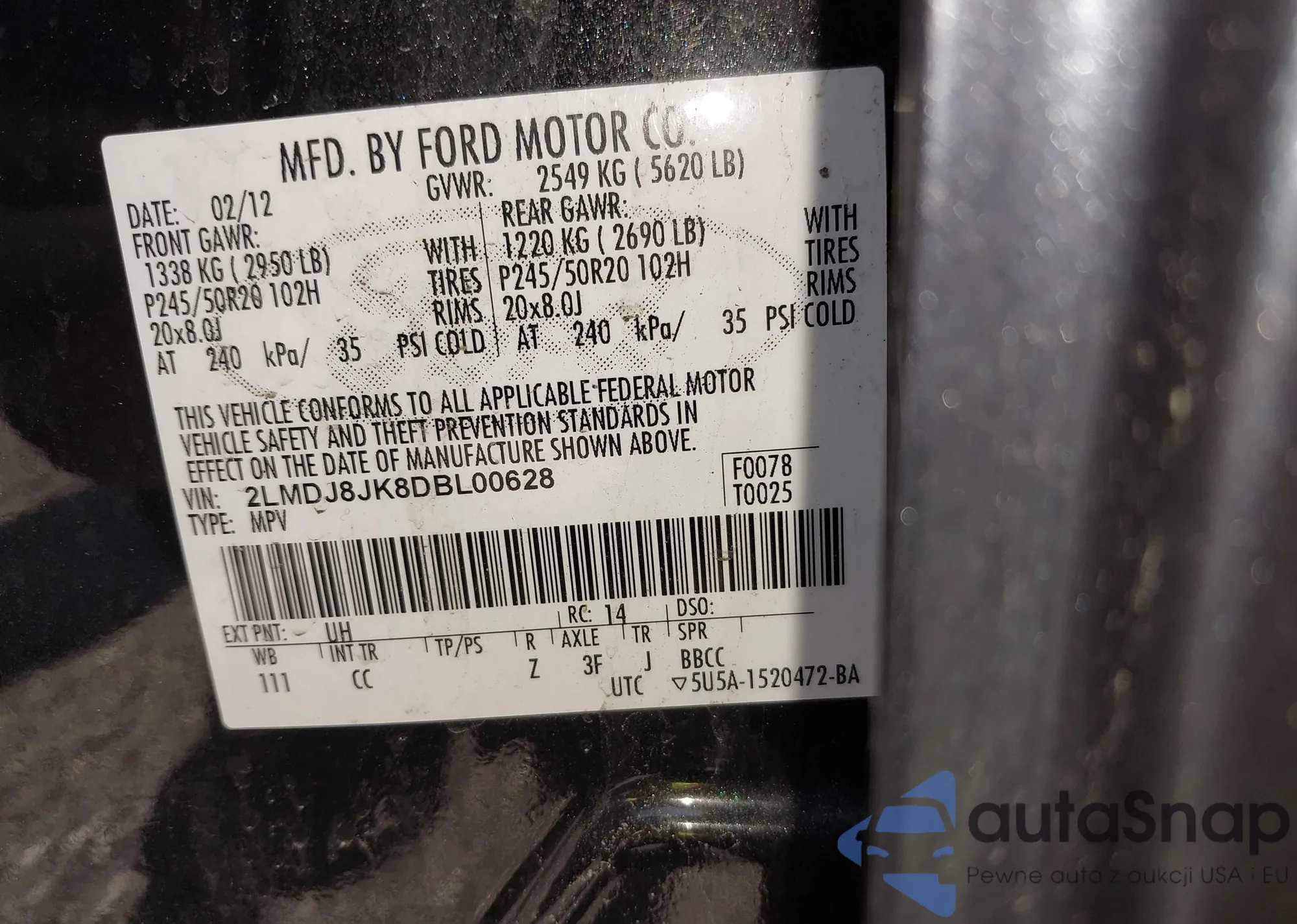 LOT: 42581197 VIN: 1FMFU17508LA14346