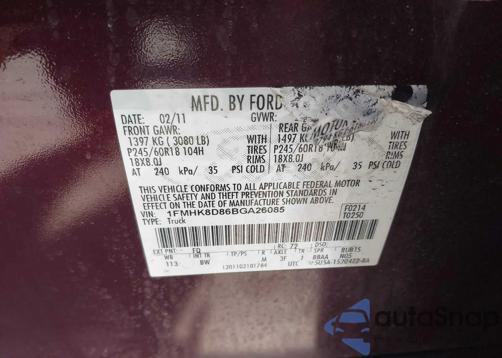 LOT: 42067149 VIN: 1FMHK8D86BGA26085
