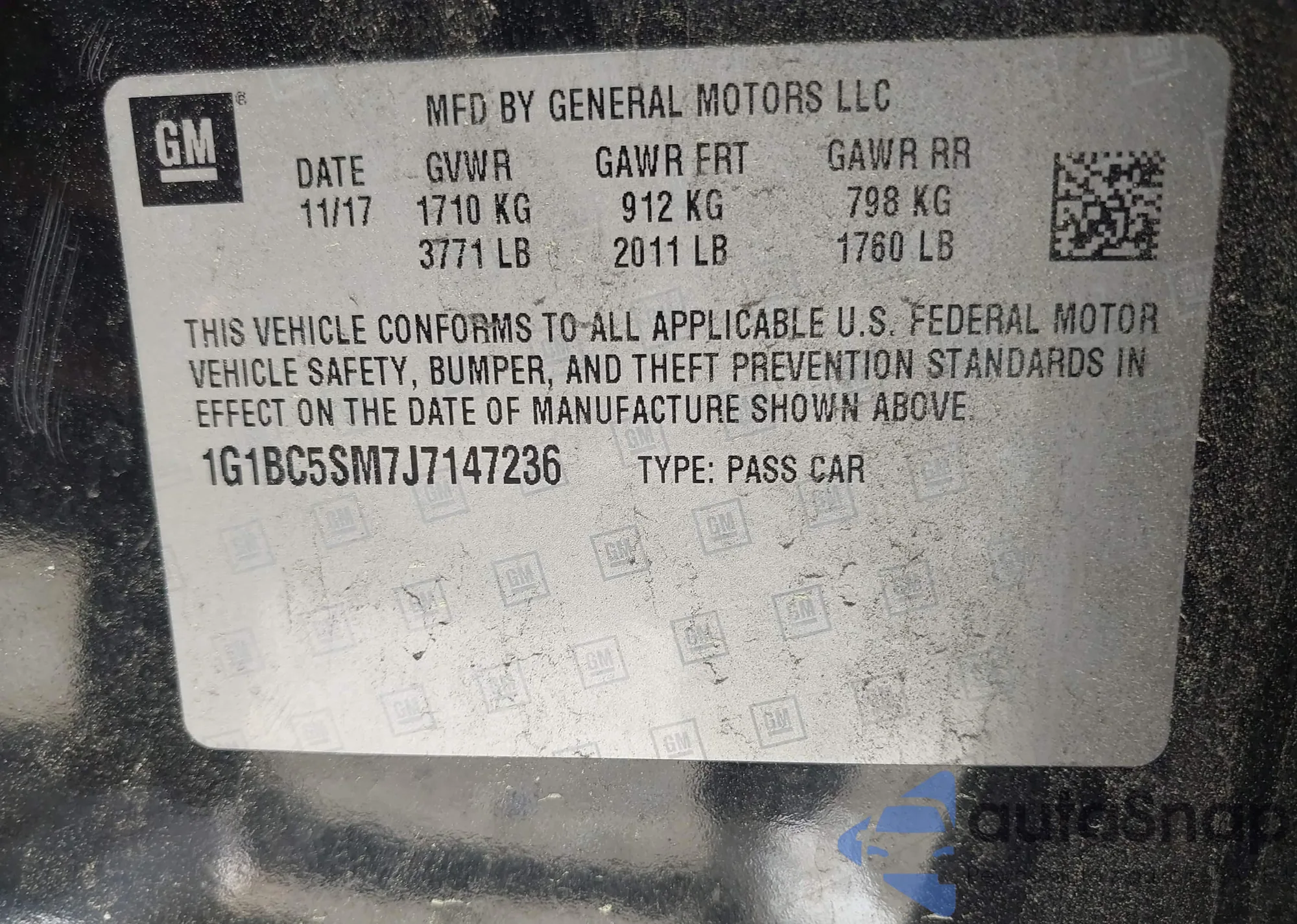 LOT: 41881372 VIN: 1G1BC5SM7J7147236