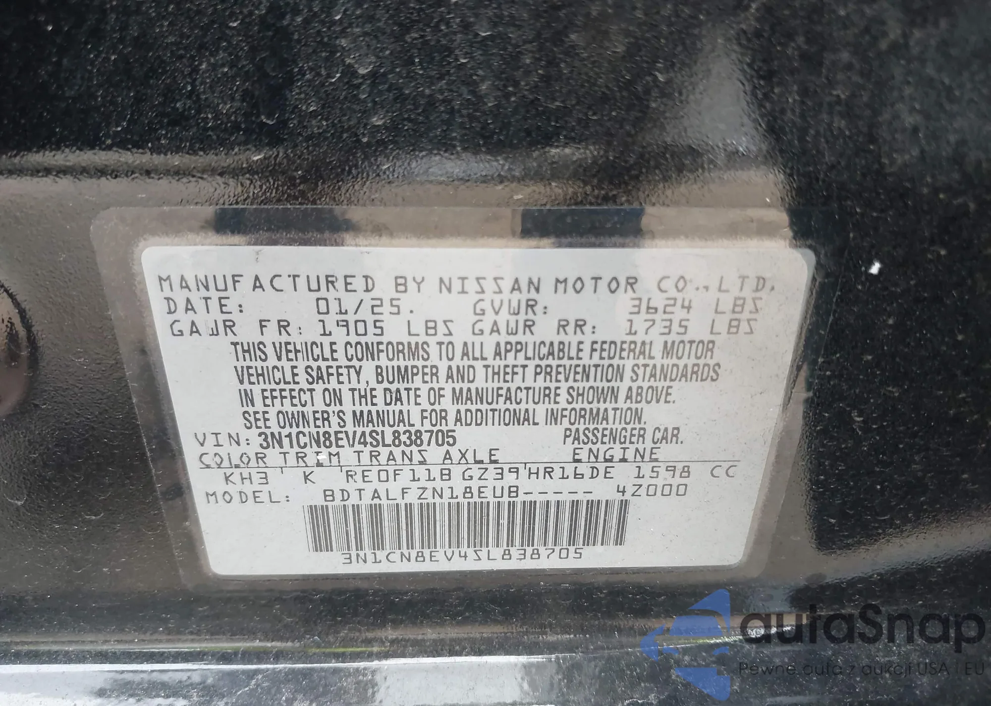 • VIN 3N1CN8EV4SL838705
