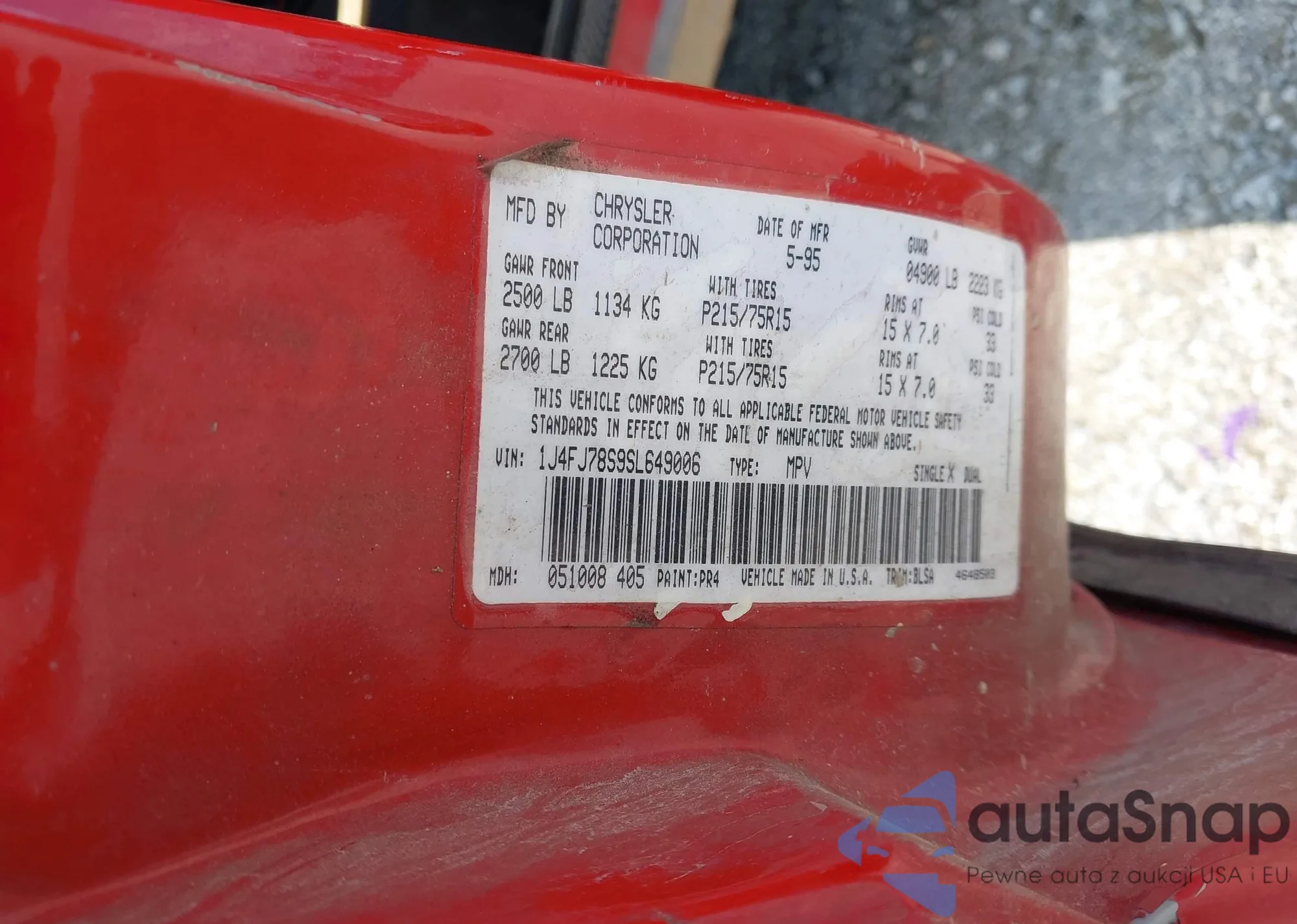 • VIN 1J4FJ78S9SL649006
