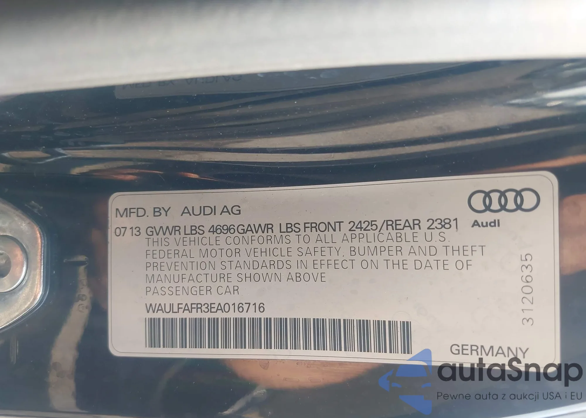 • VIN WAULFAFR3EA016716