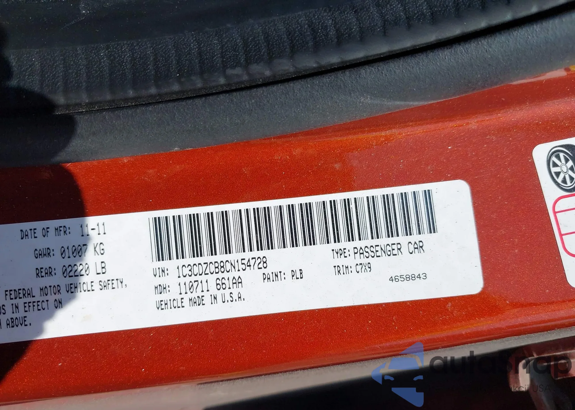 LOT: 42527378 VIN: 1C3CDZCB8CN154728
