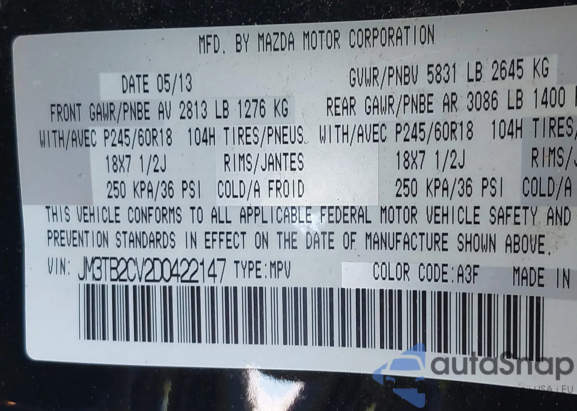 • VIN 1FM5K7F89DGA78078