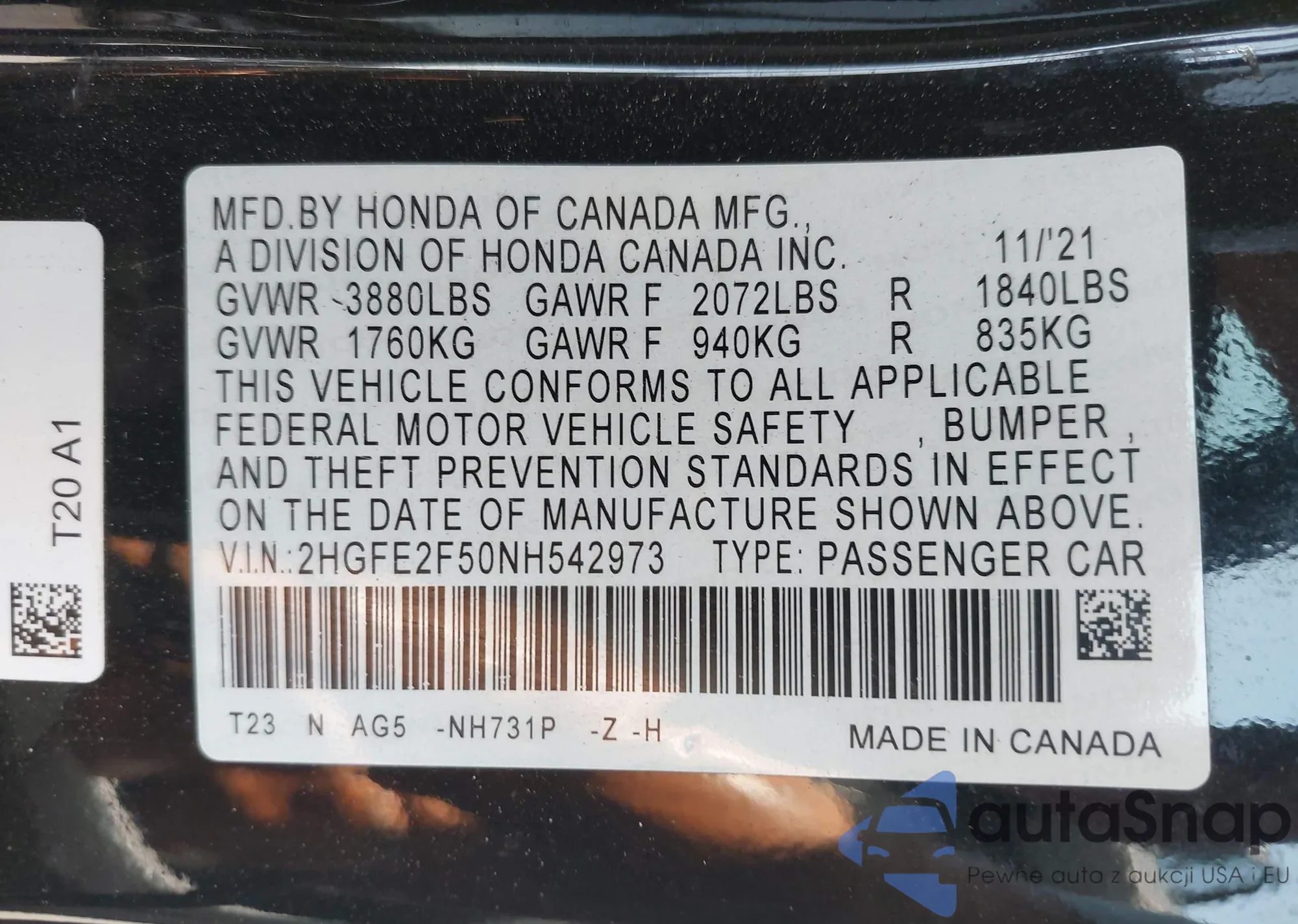 • VIN 2HGFG1B63AH518955