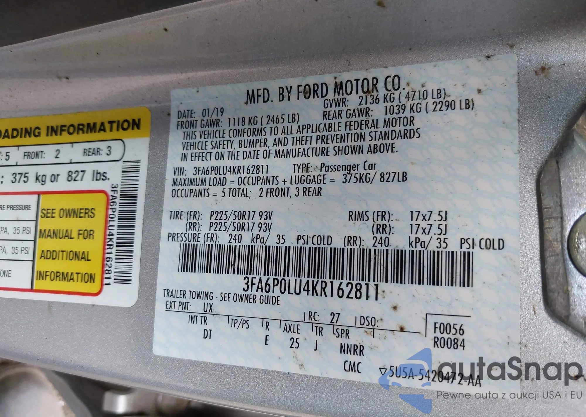 • VIN 3FA6P0LU4KR162811