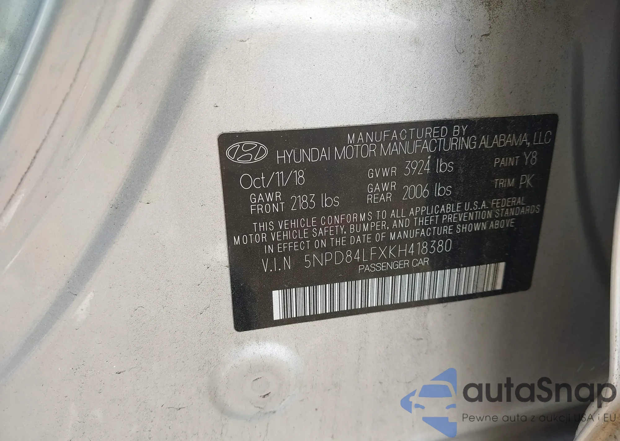 • VIN 5NPD84LFXKH418380