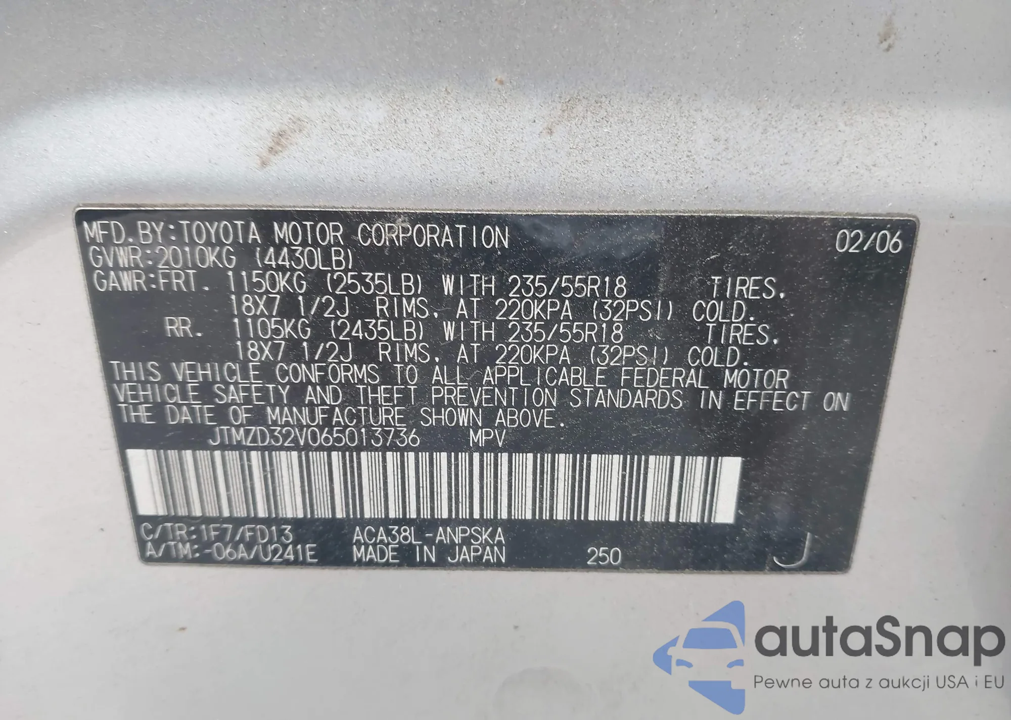 • VIN JTMZD32V065013736