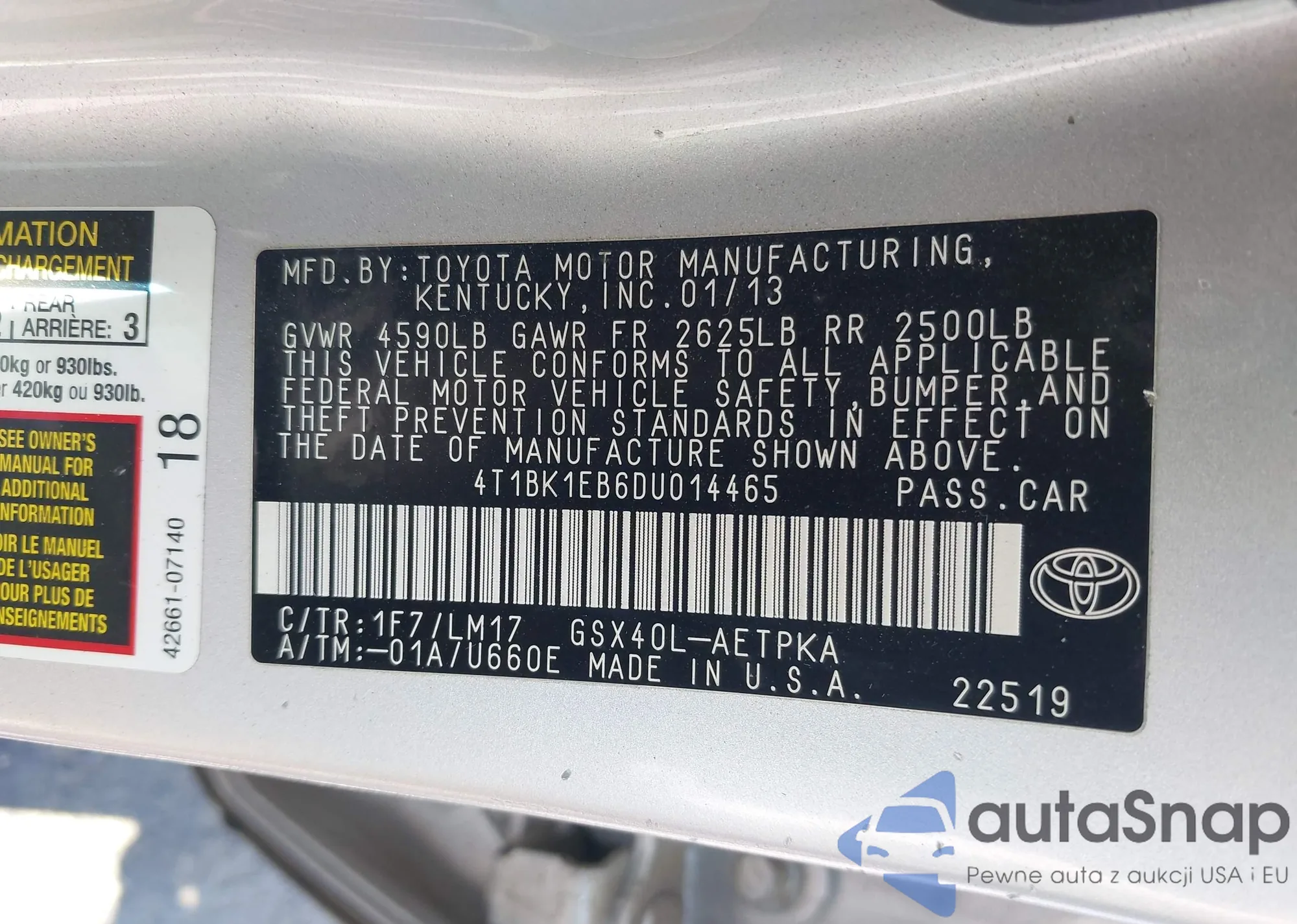 • VIN 4T1BK1EB6DU014465