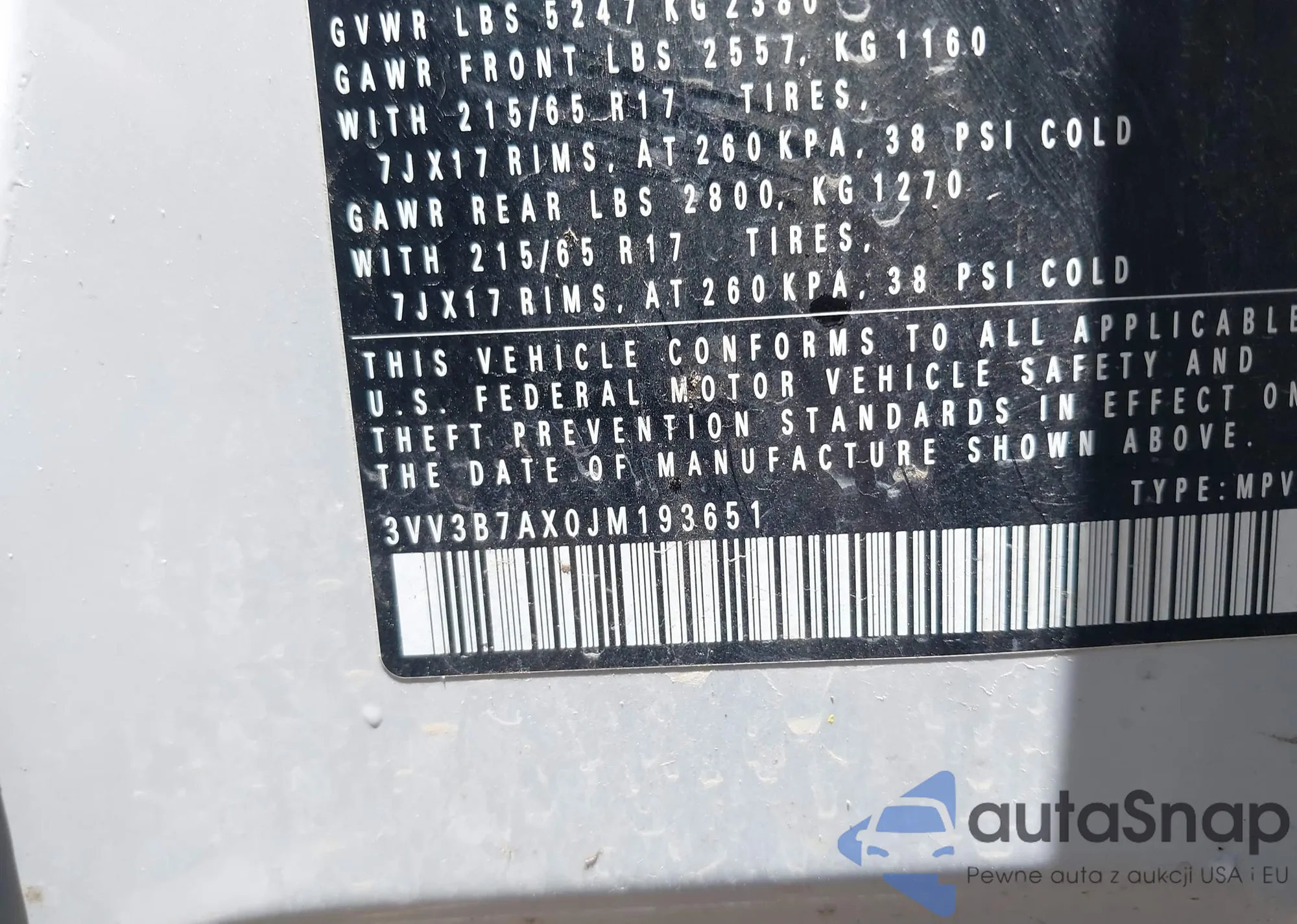 • VIN 3VV3B7AX0JM193651