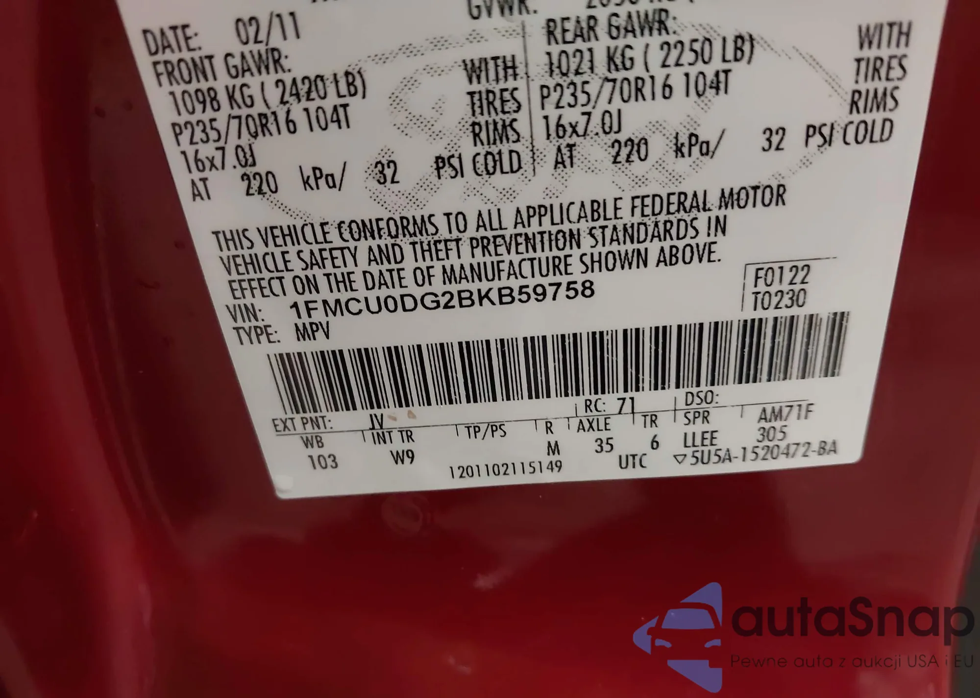 • VIN JN8AS5MT1DW517072