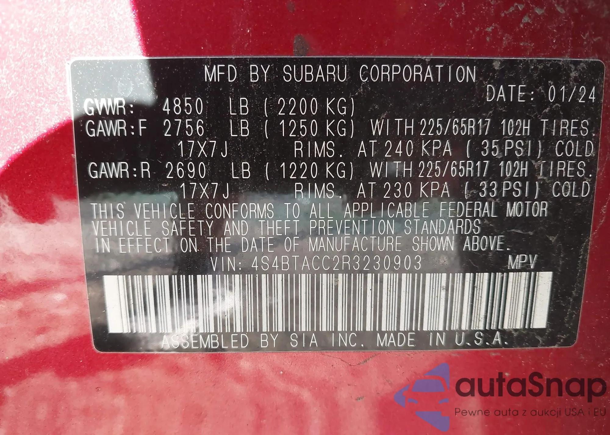 • VIN 4S4BTACC2R3230903