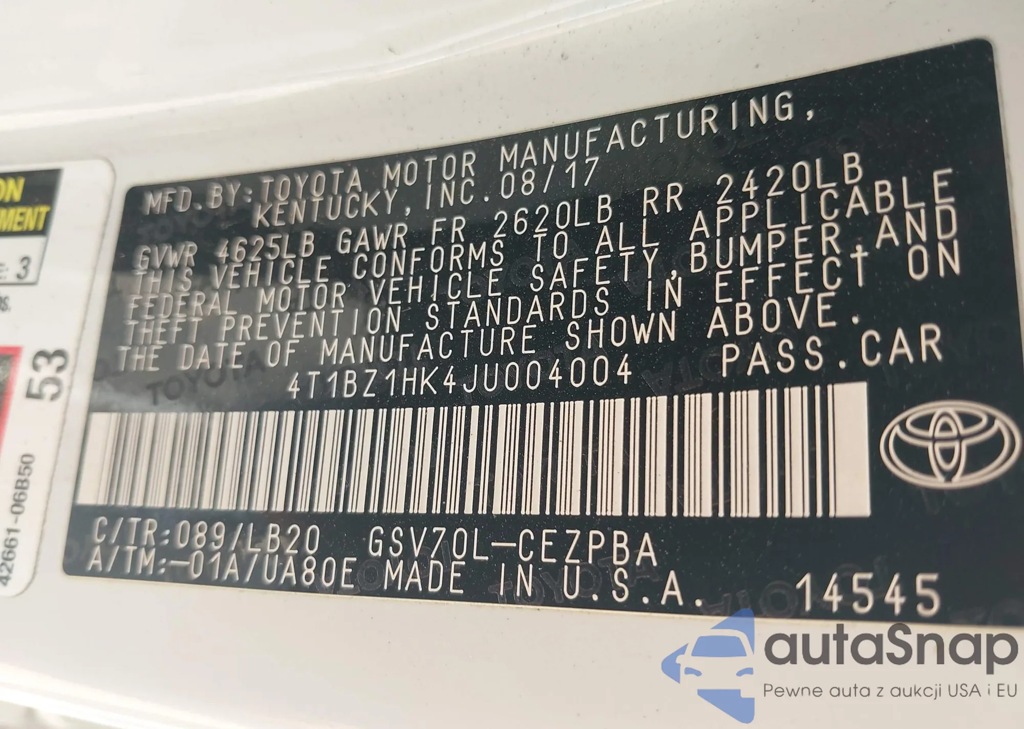 • VIN 4T1BZ1HK4JU004004