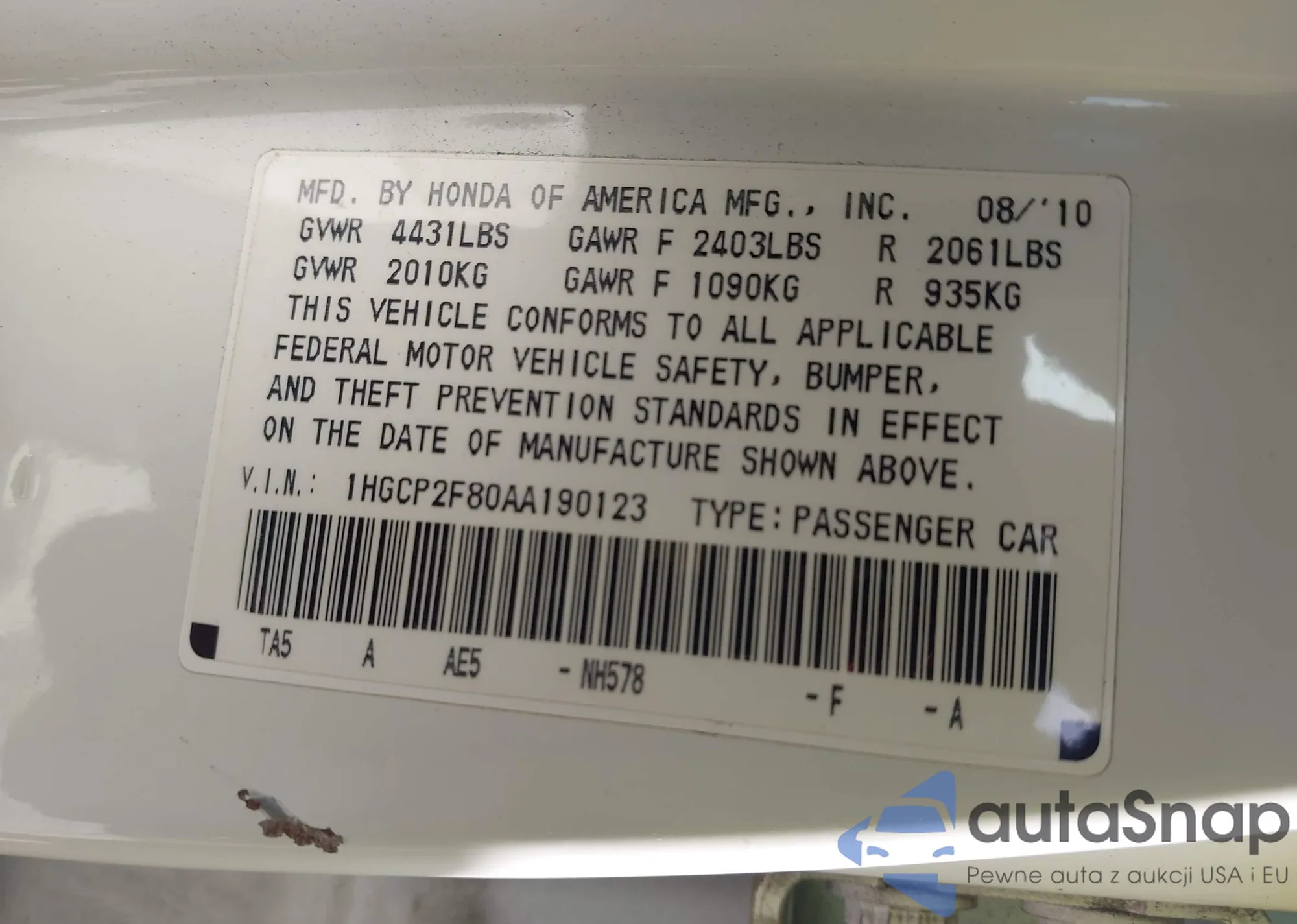 • VIN 1N4AZ0CP8DC420036