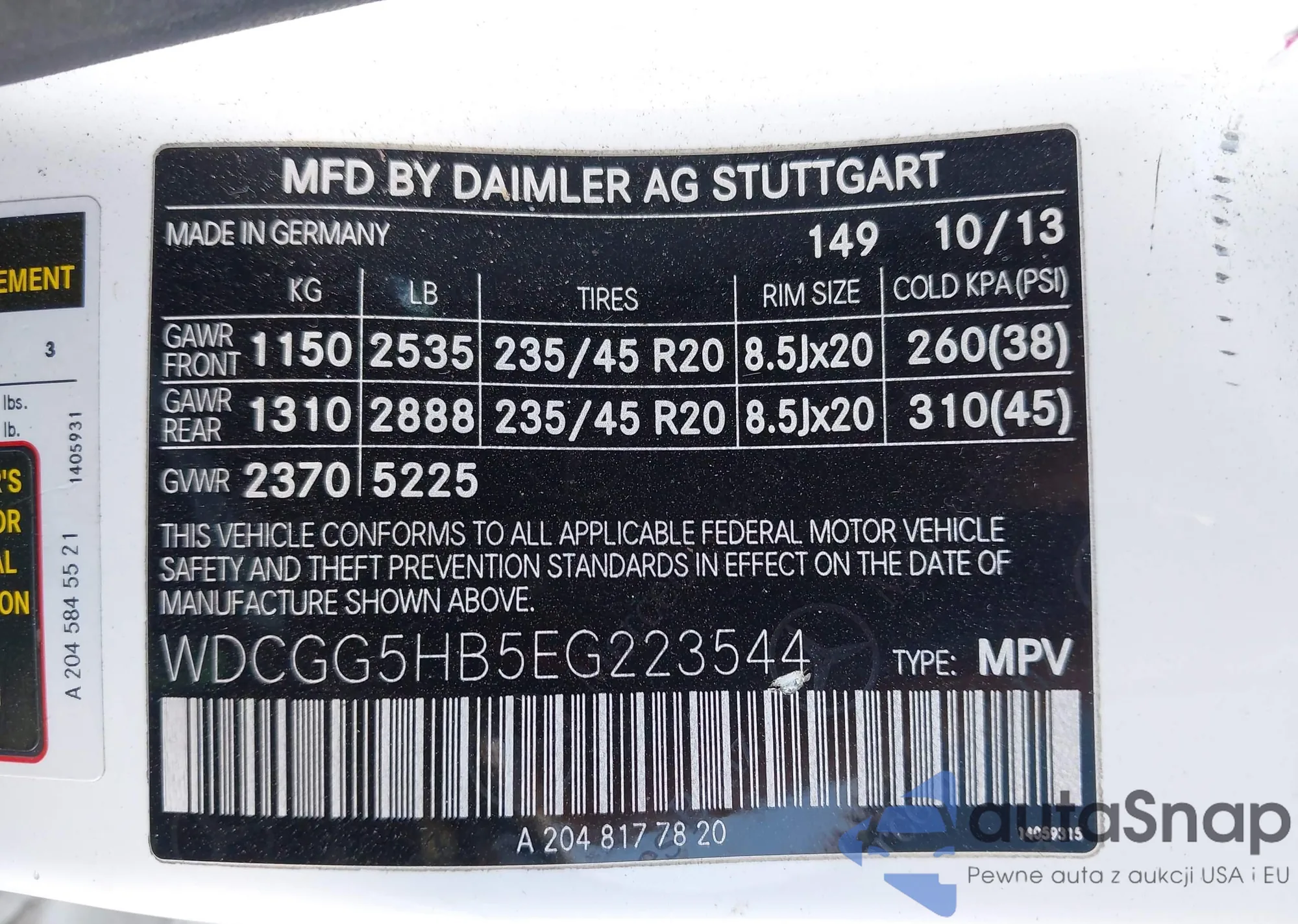 • VIN WDCGG5HB5EG223544