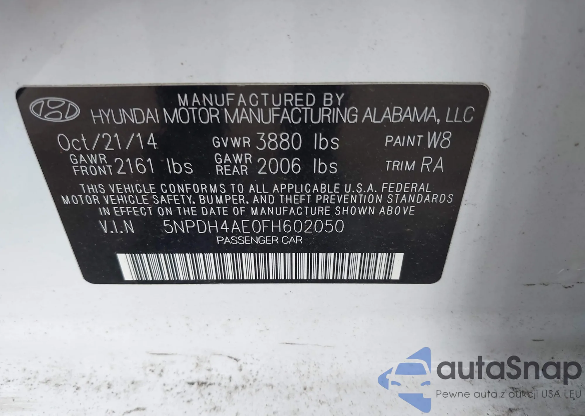 LOT: 42710504 VIN: 5NPDH4AE0FH602050