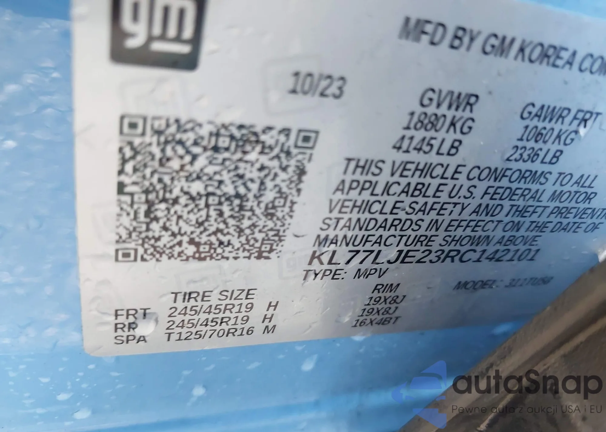 • VIN KL77LJE23RC142101