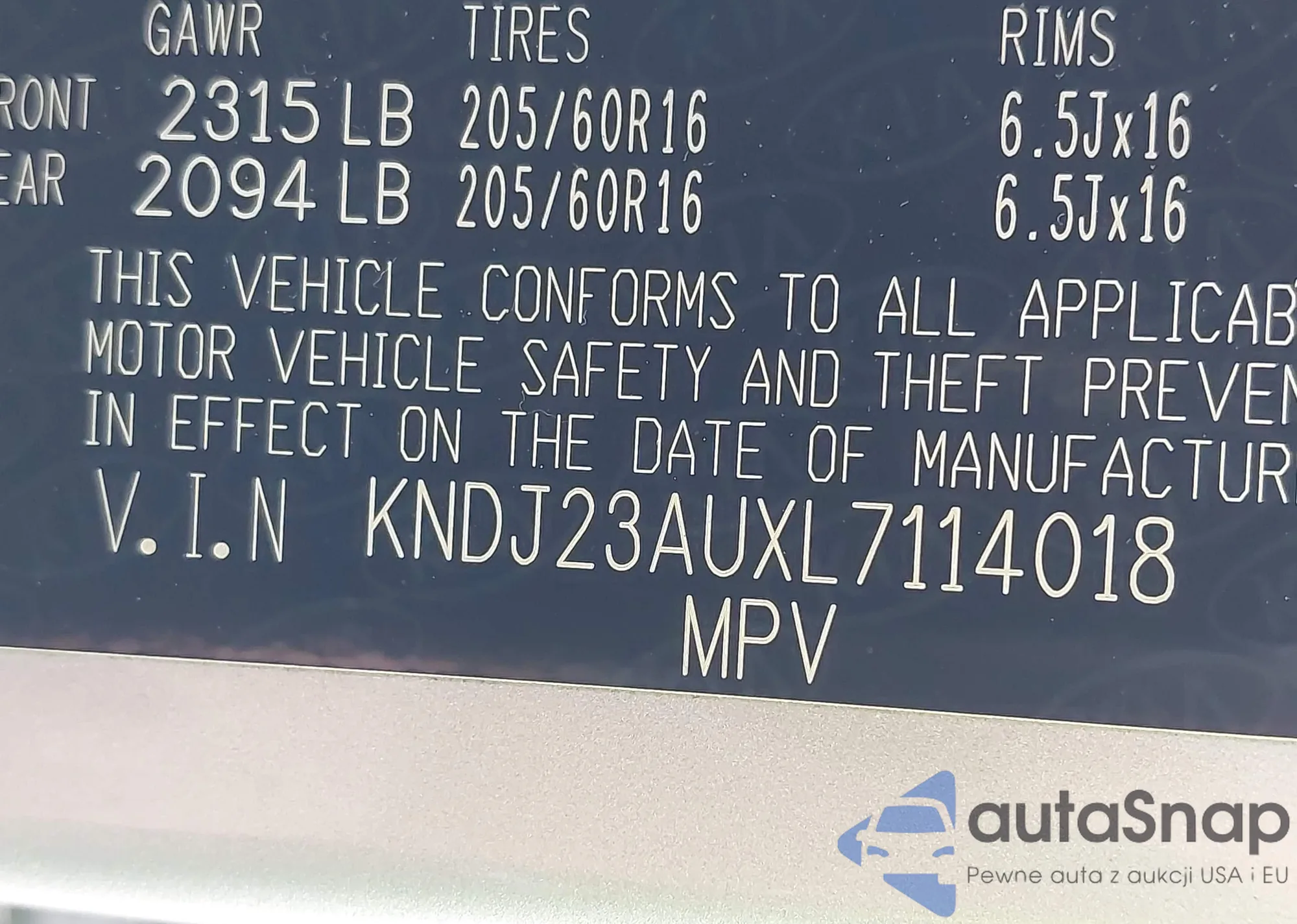 • VIN KNDJ23AUXL7114018