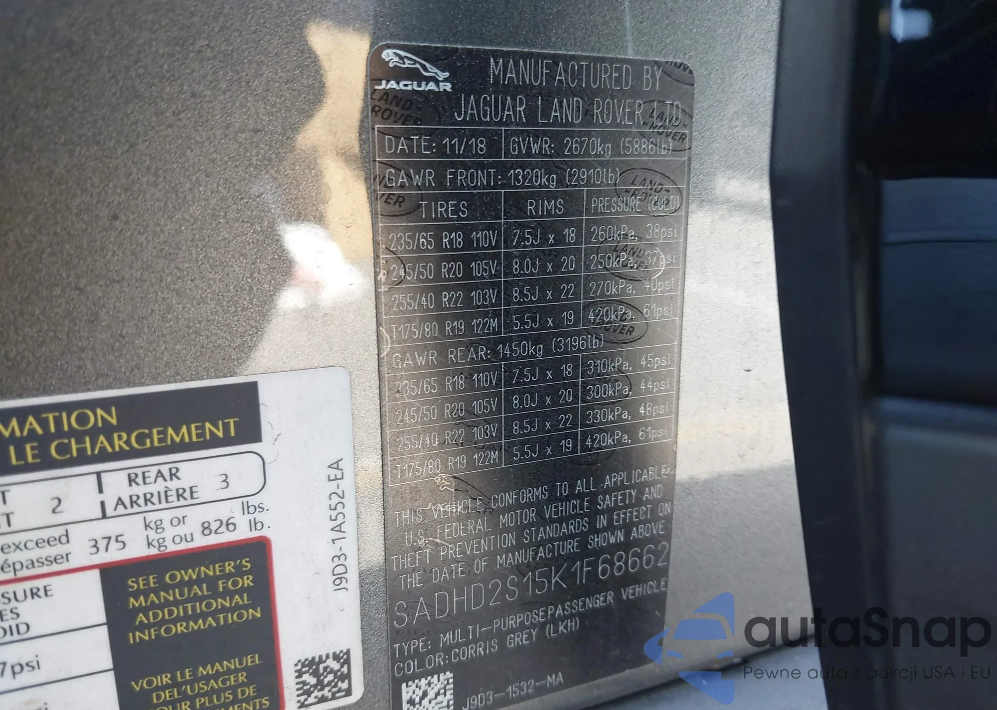 LOT: 42877173 VIN: SADHD2S15K1F68662