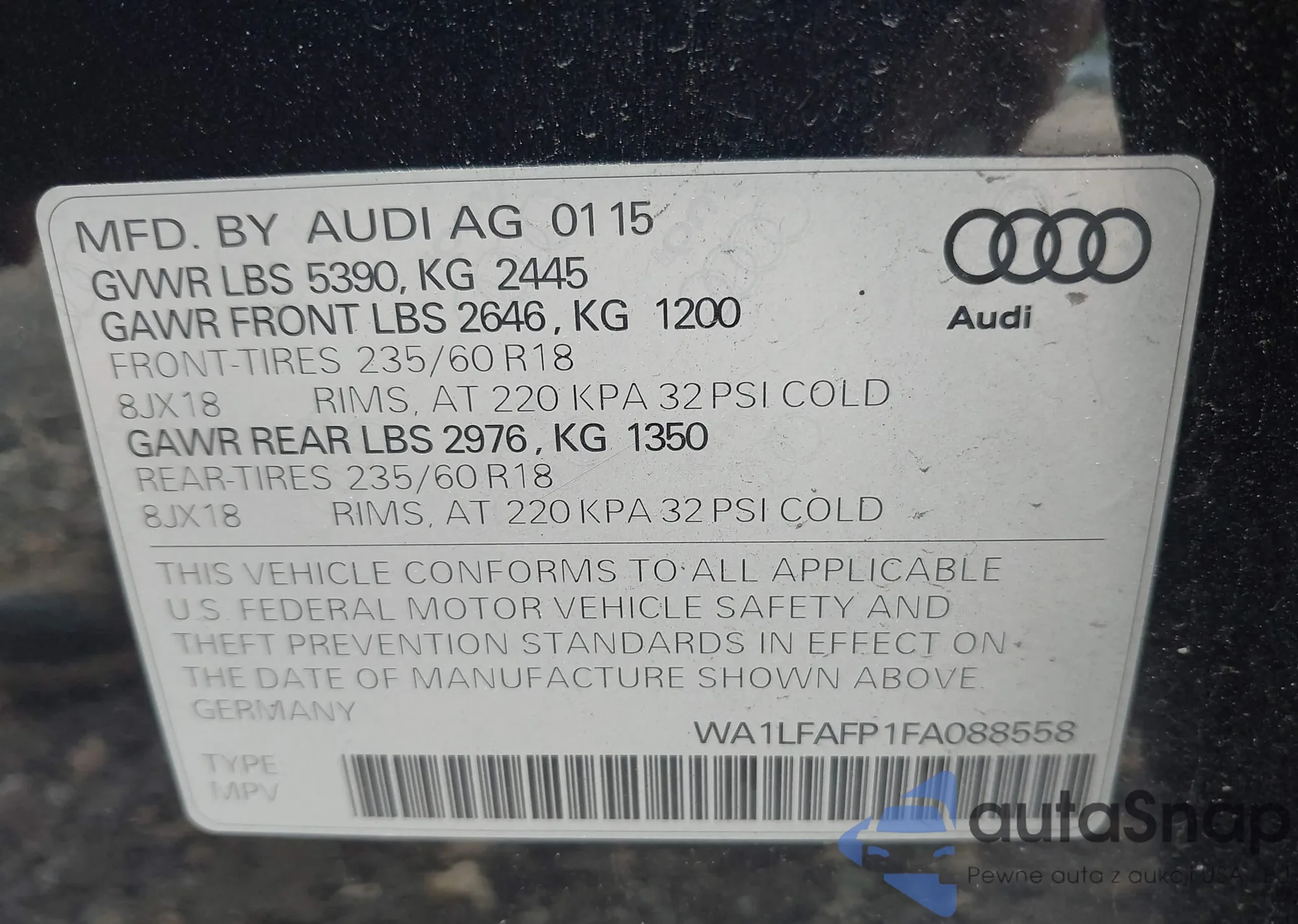 LOT: 42901392 VIN: WA1LFAFP1FA088558