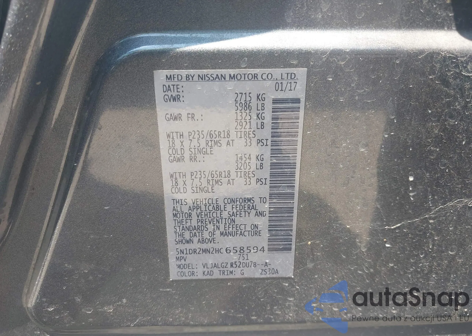 • VIN 5N1DR2MN2HC658594