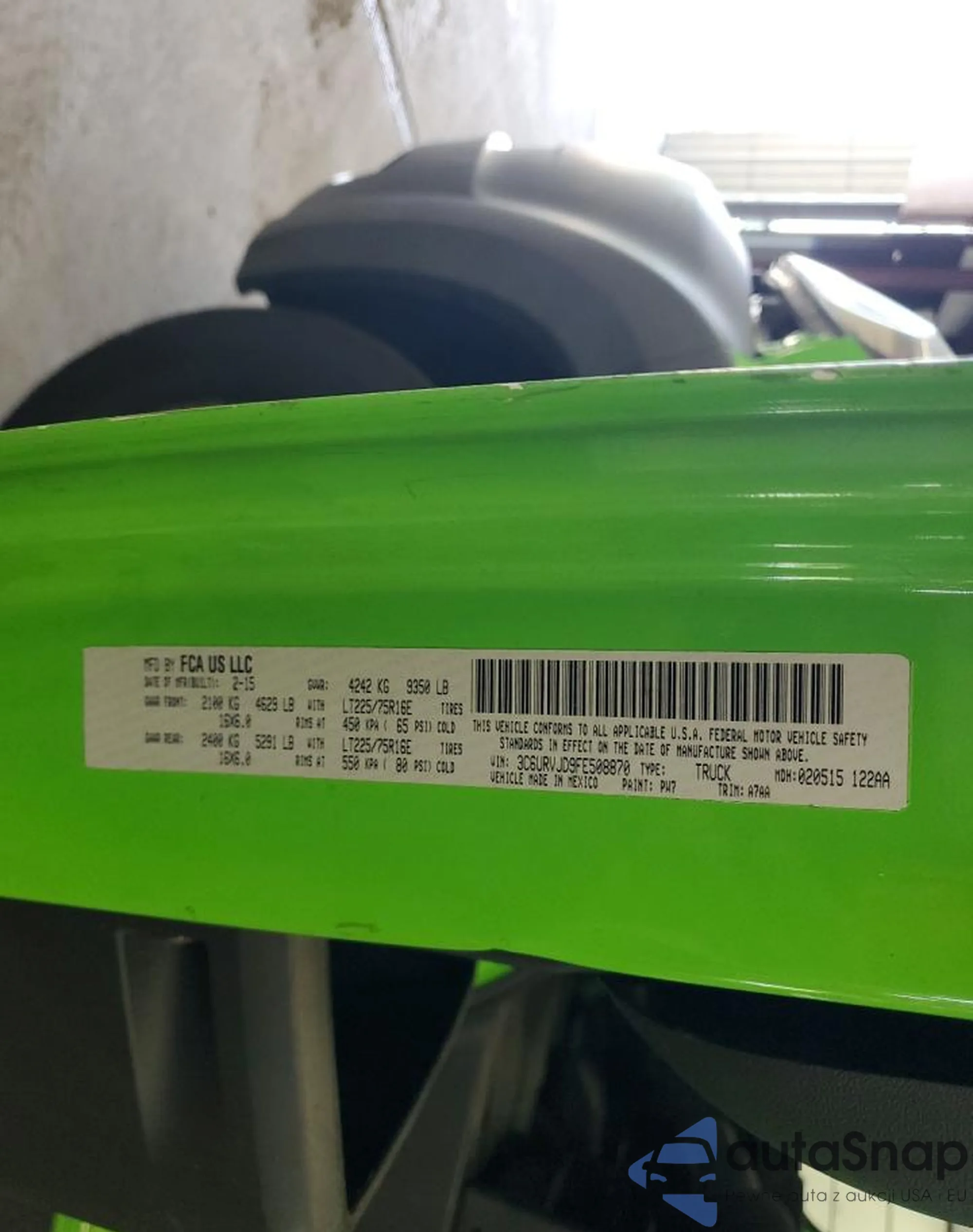 • VIN 3C6URVJD9FE508870