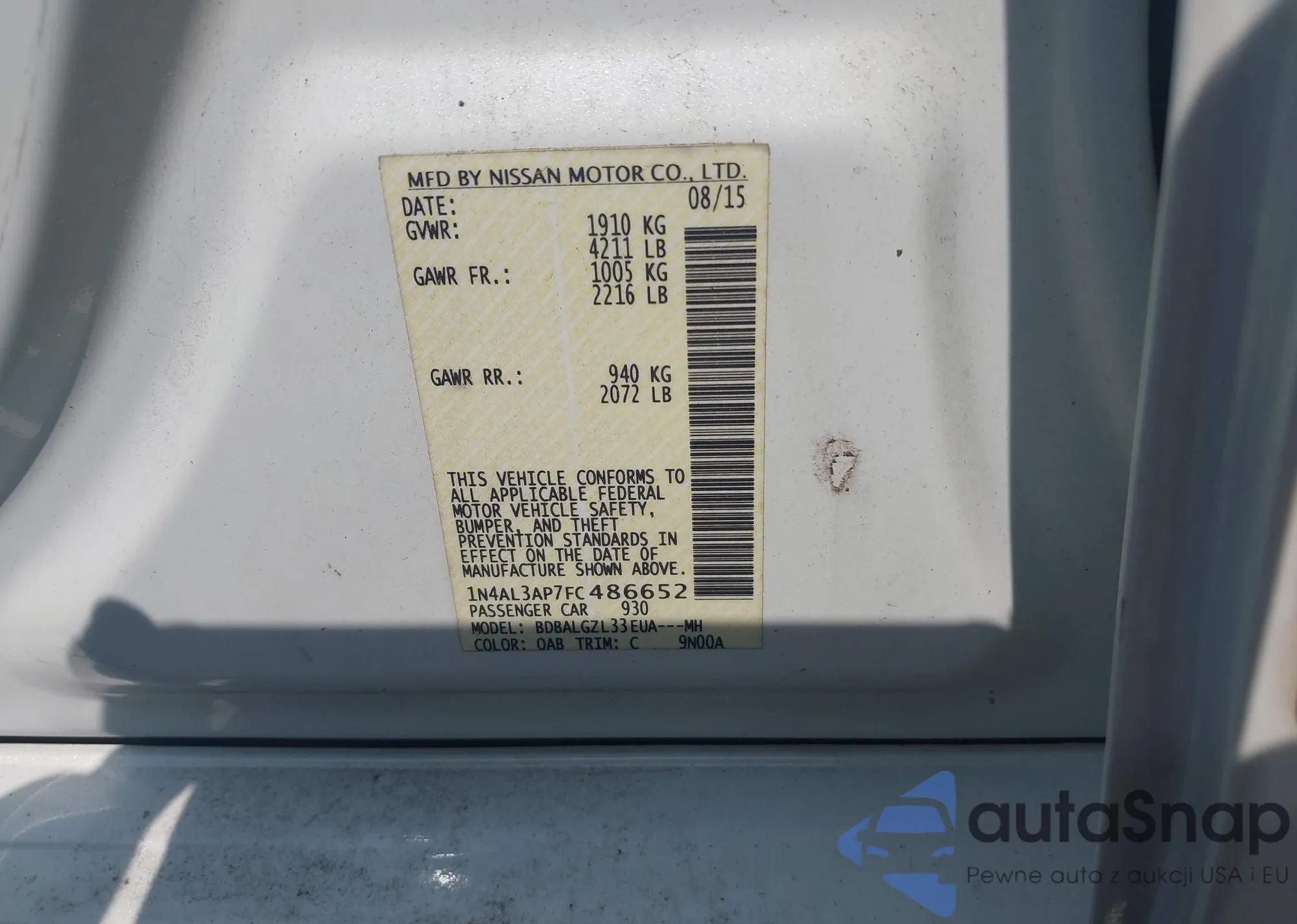 • VIN 1N4AL3AP7FC486652