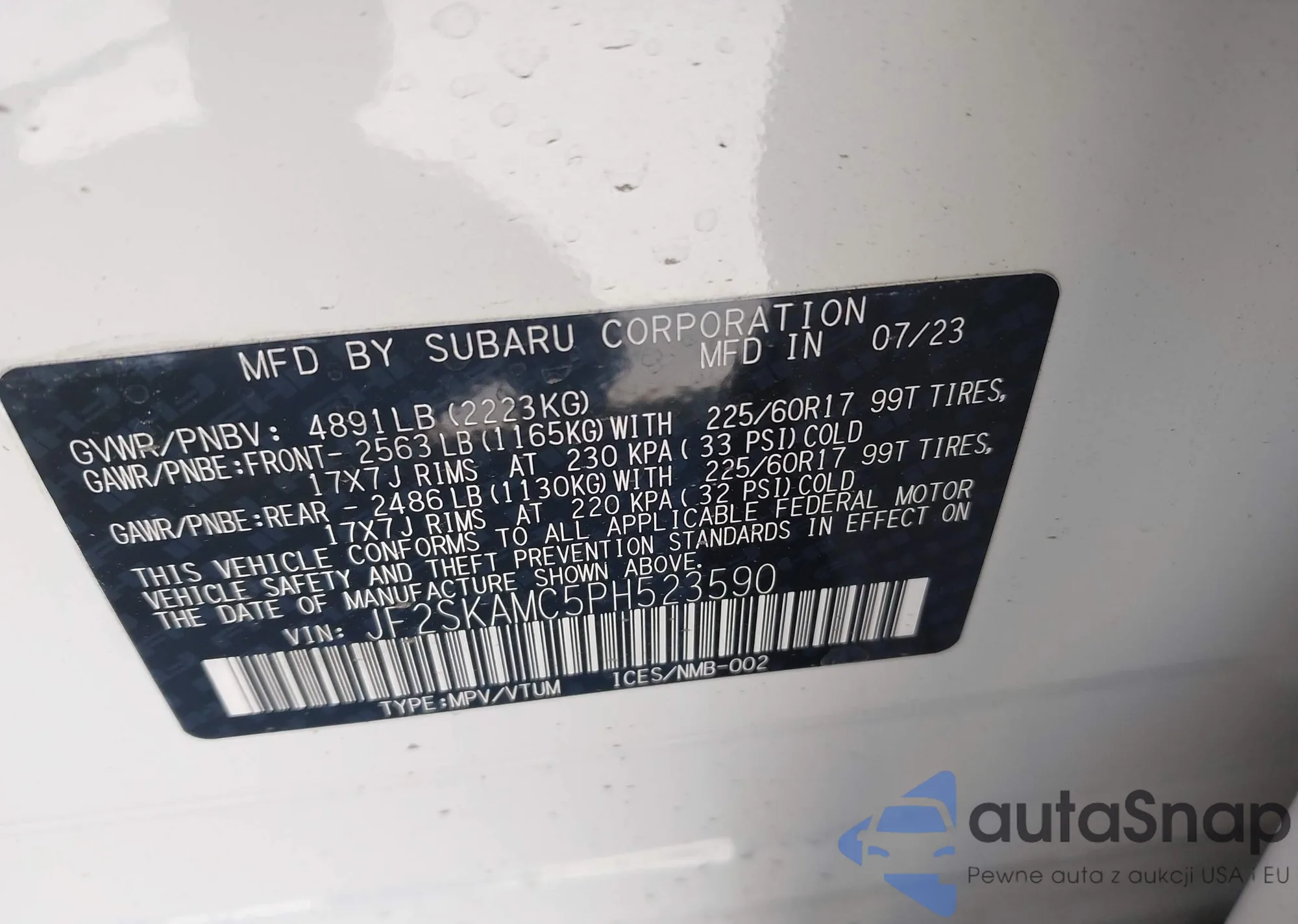 LOT: 42850087 VIN: JF2GTAJC7JH284509