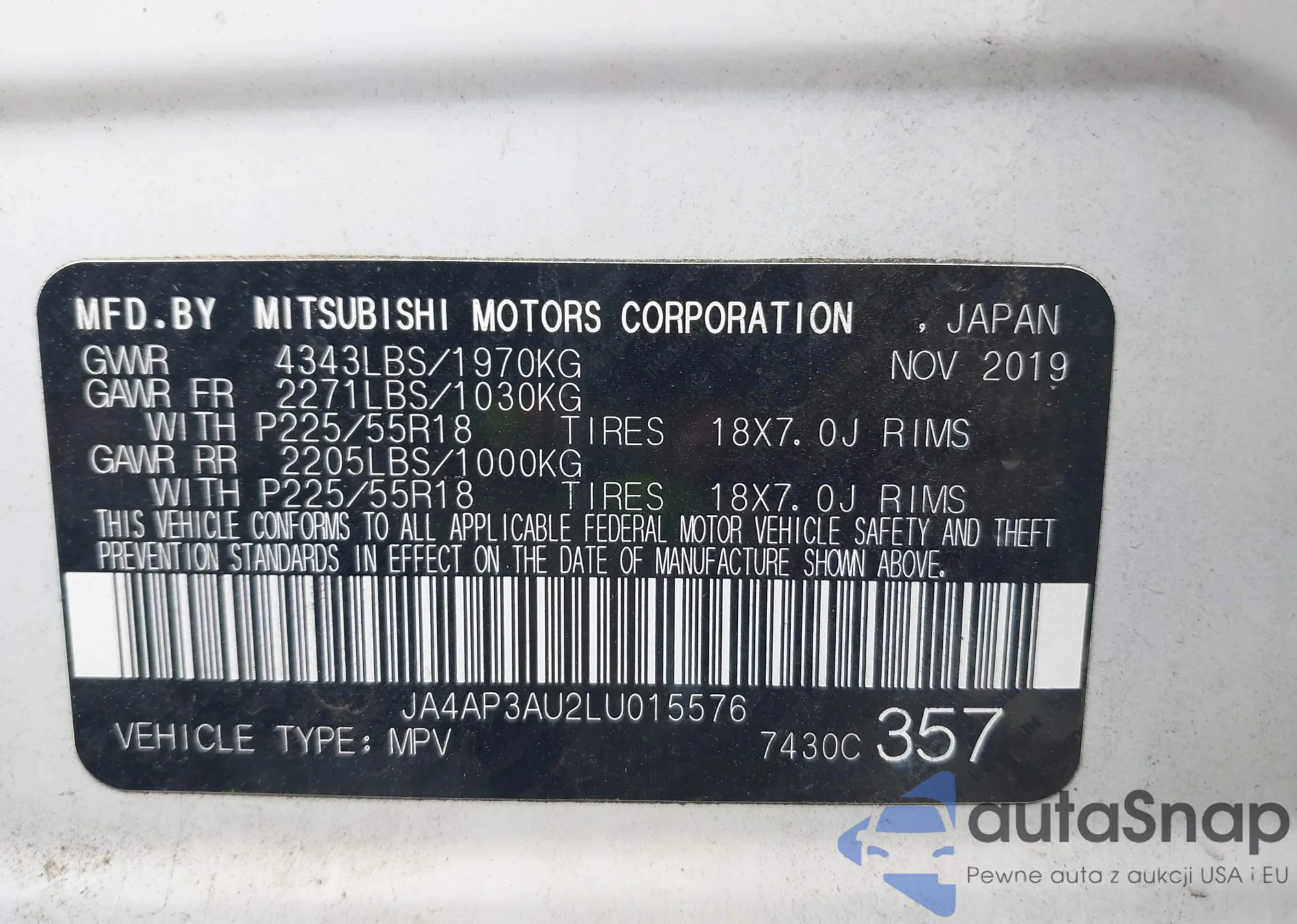 LOT: 42700802 VIN: JA4AP3AU2LU015576