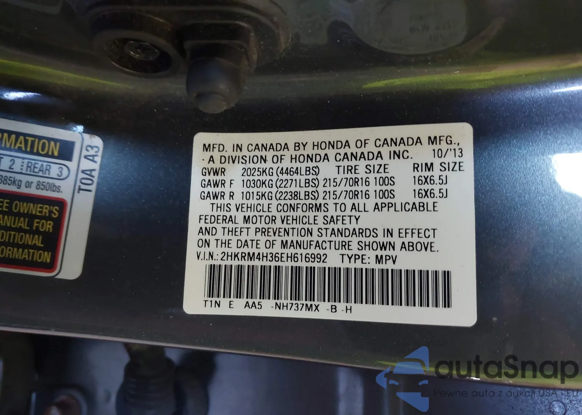 • VIN 2HKRM4H36EH616992