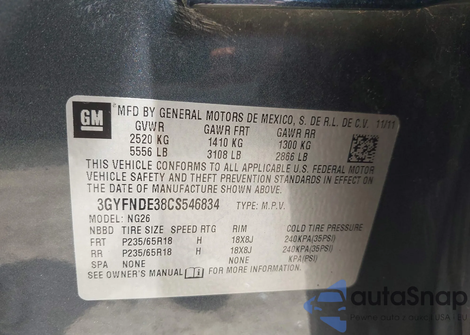 • VIN 3GYFNDE38CS546834