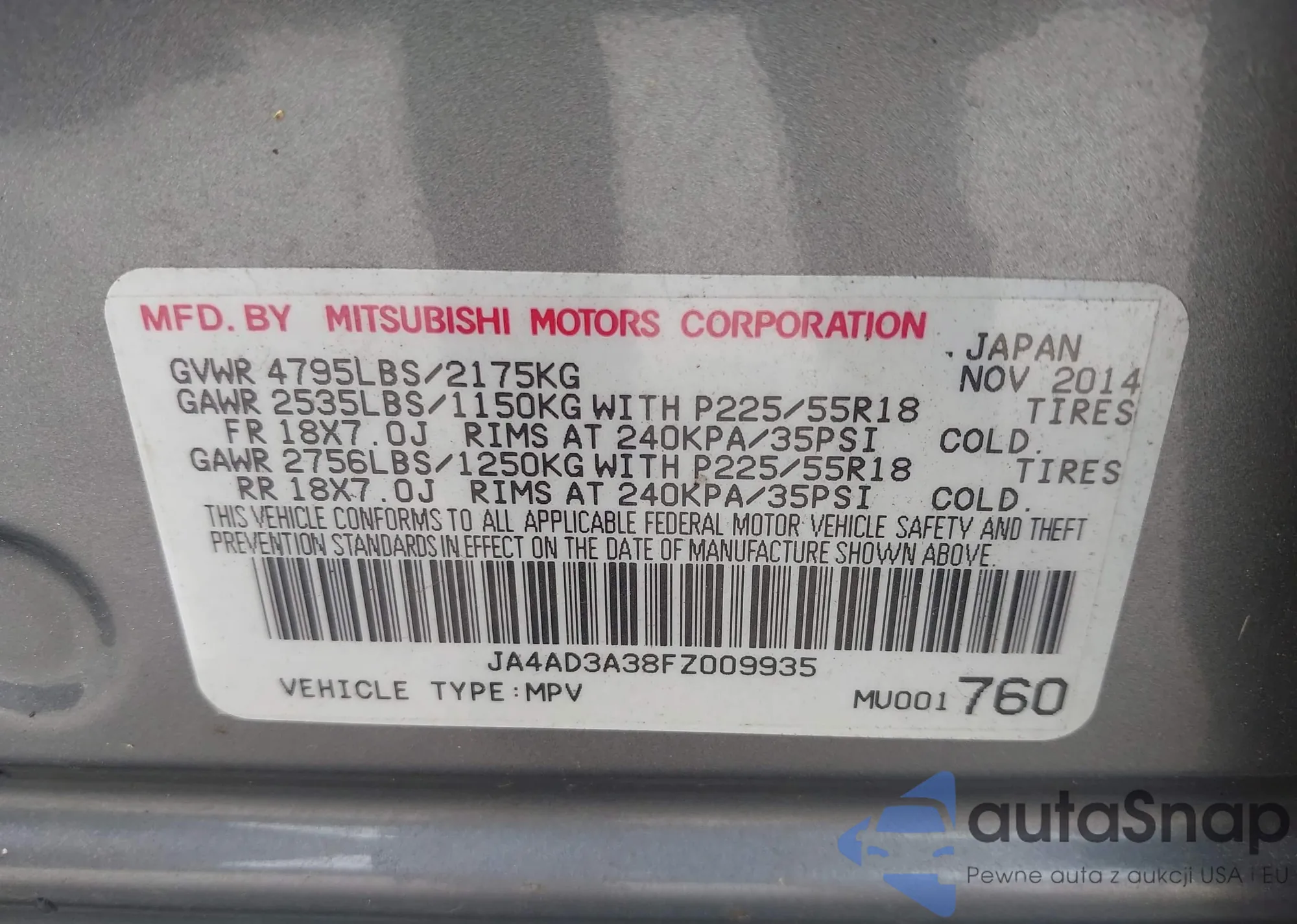 • VIN JA4AD3A38FZ009935