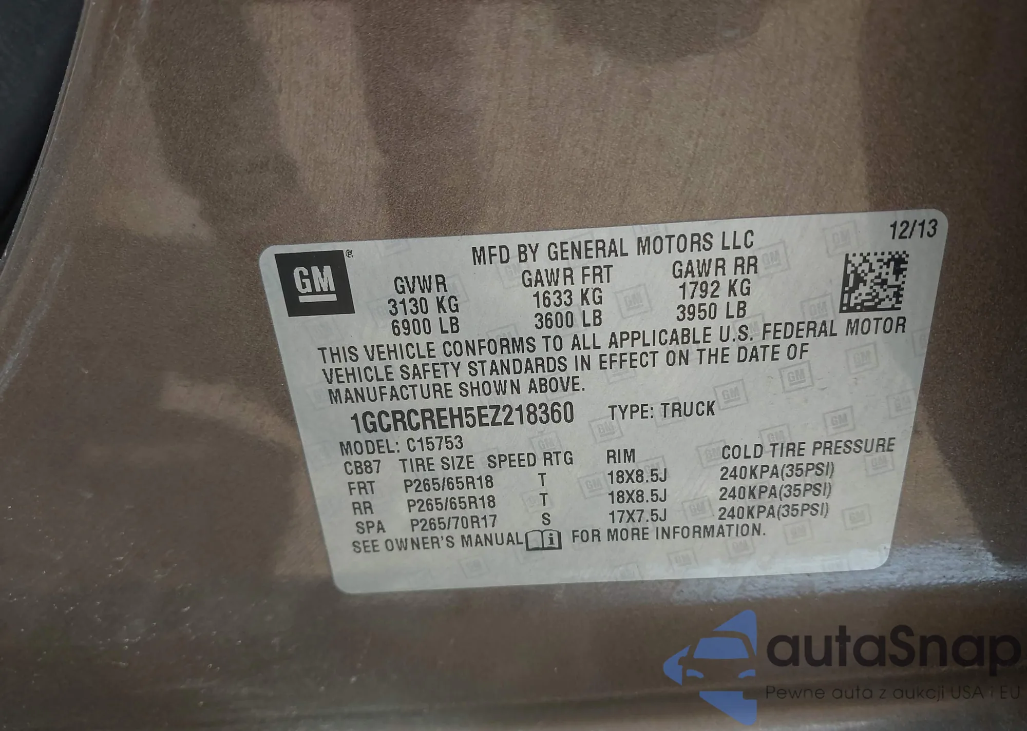 • VIN WA1LGAFE4FD006901