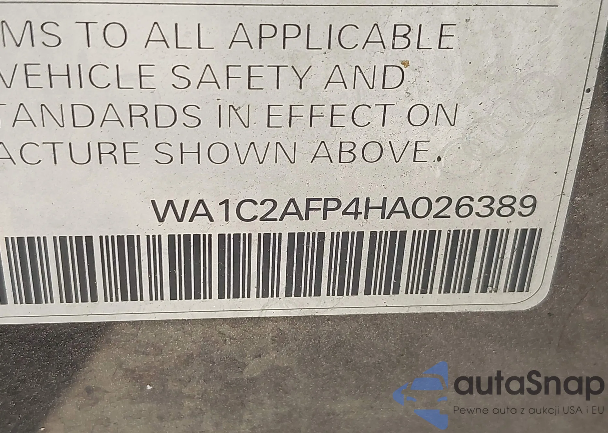LOT: 42417358 VIN: WA1C2AFP4HA026389