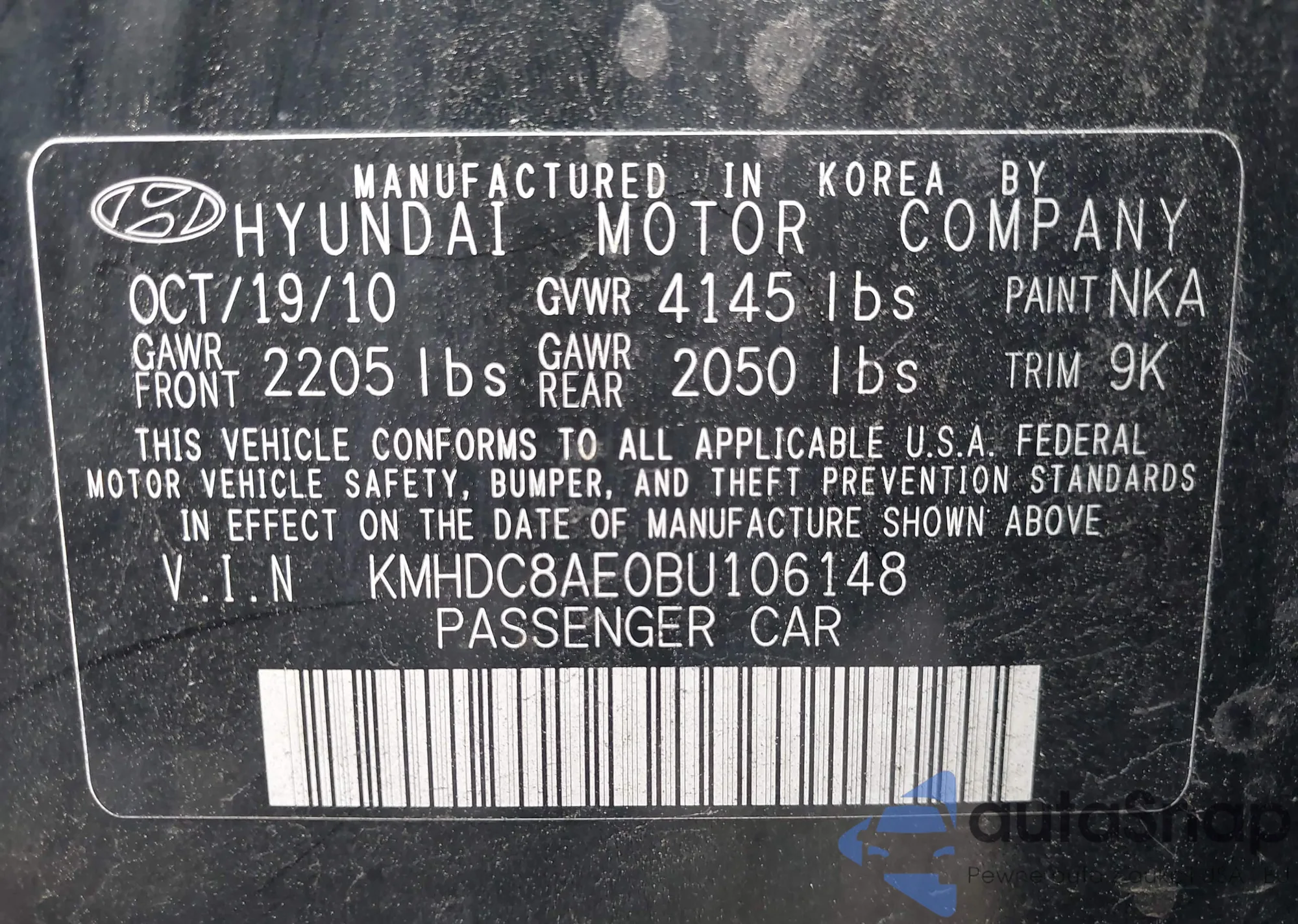 • VIN KMHDC8AE0BU106148