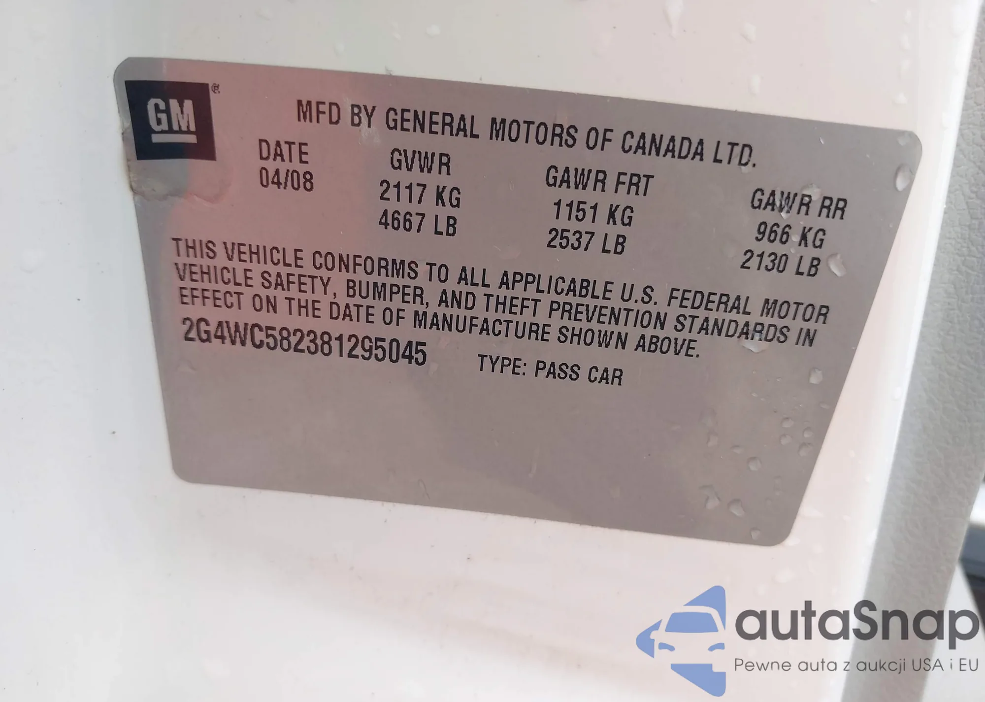 LOT: 42628685 VIN: 2G4WC582381295045