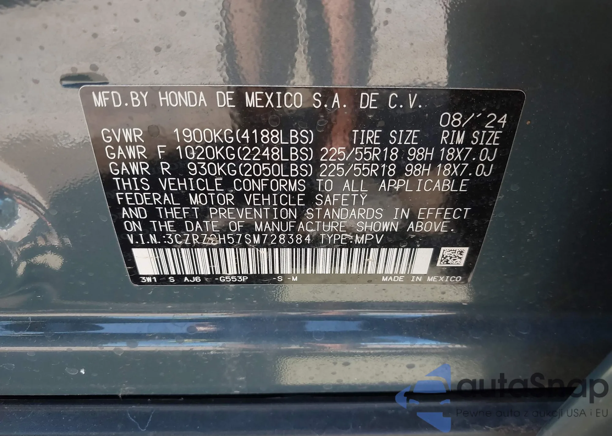 • VIN 3CZRZ2H57SM728384