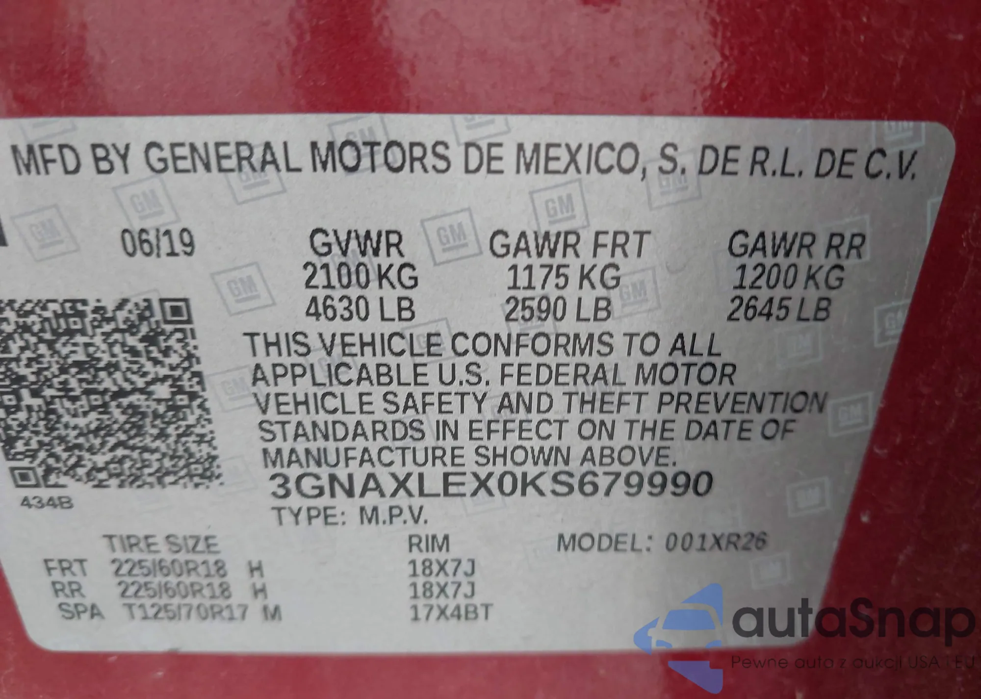 • VIN 3GNAXLEX0KS679990