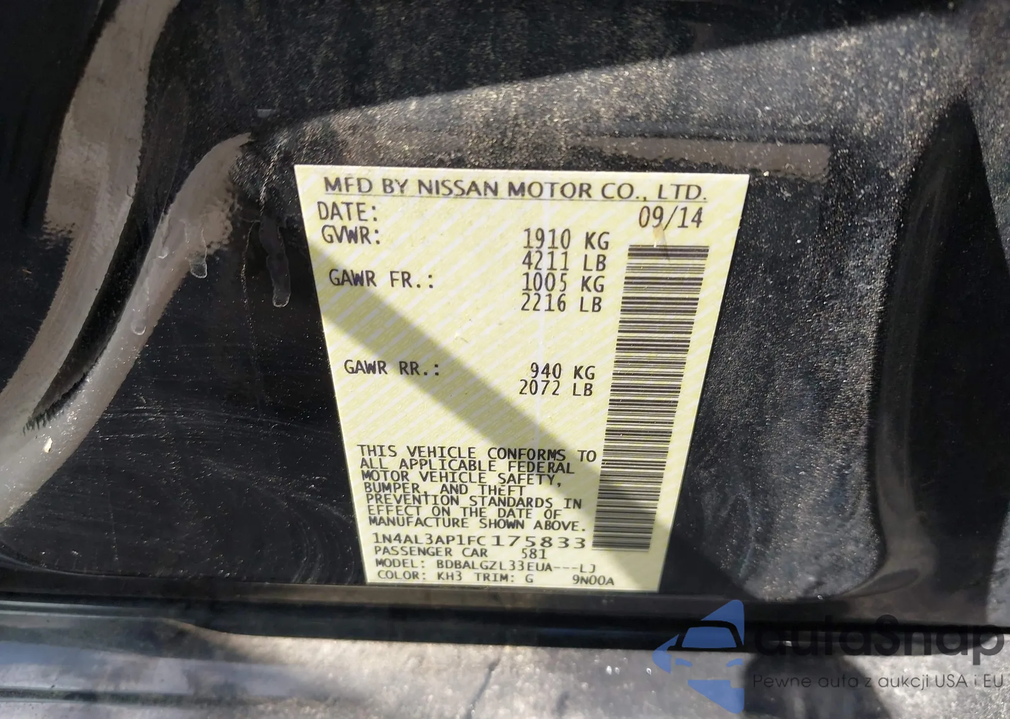 LOT: 42805947 VIN: 1N4AL3AP1FC175833