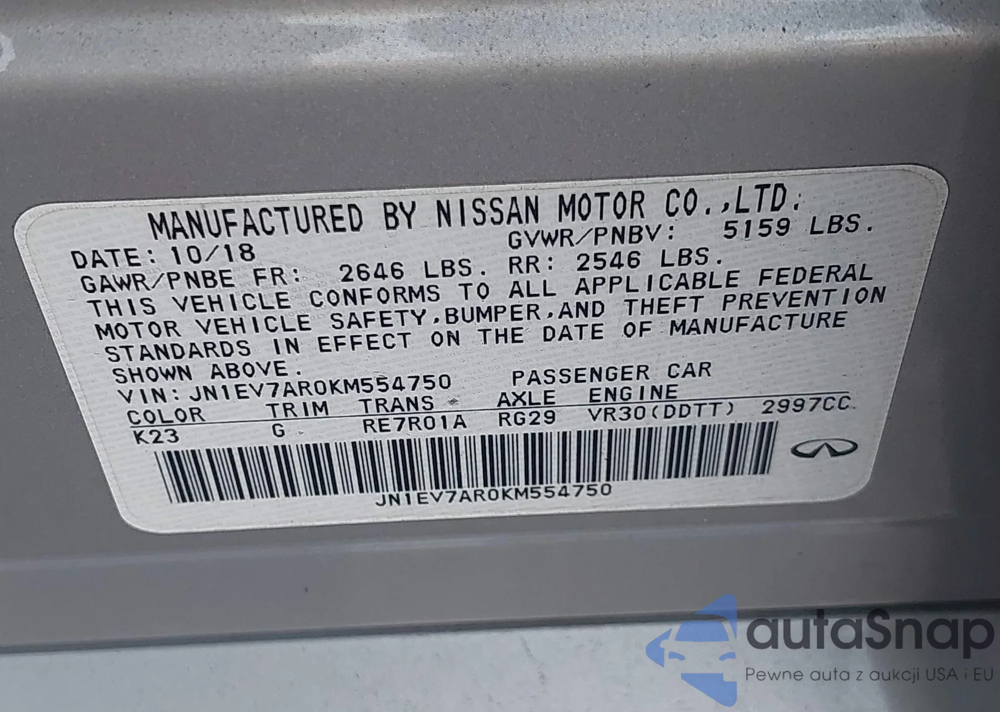 LOT: 41718319 VIN: JN1EV7AR0KM554750