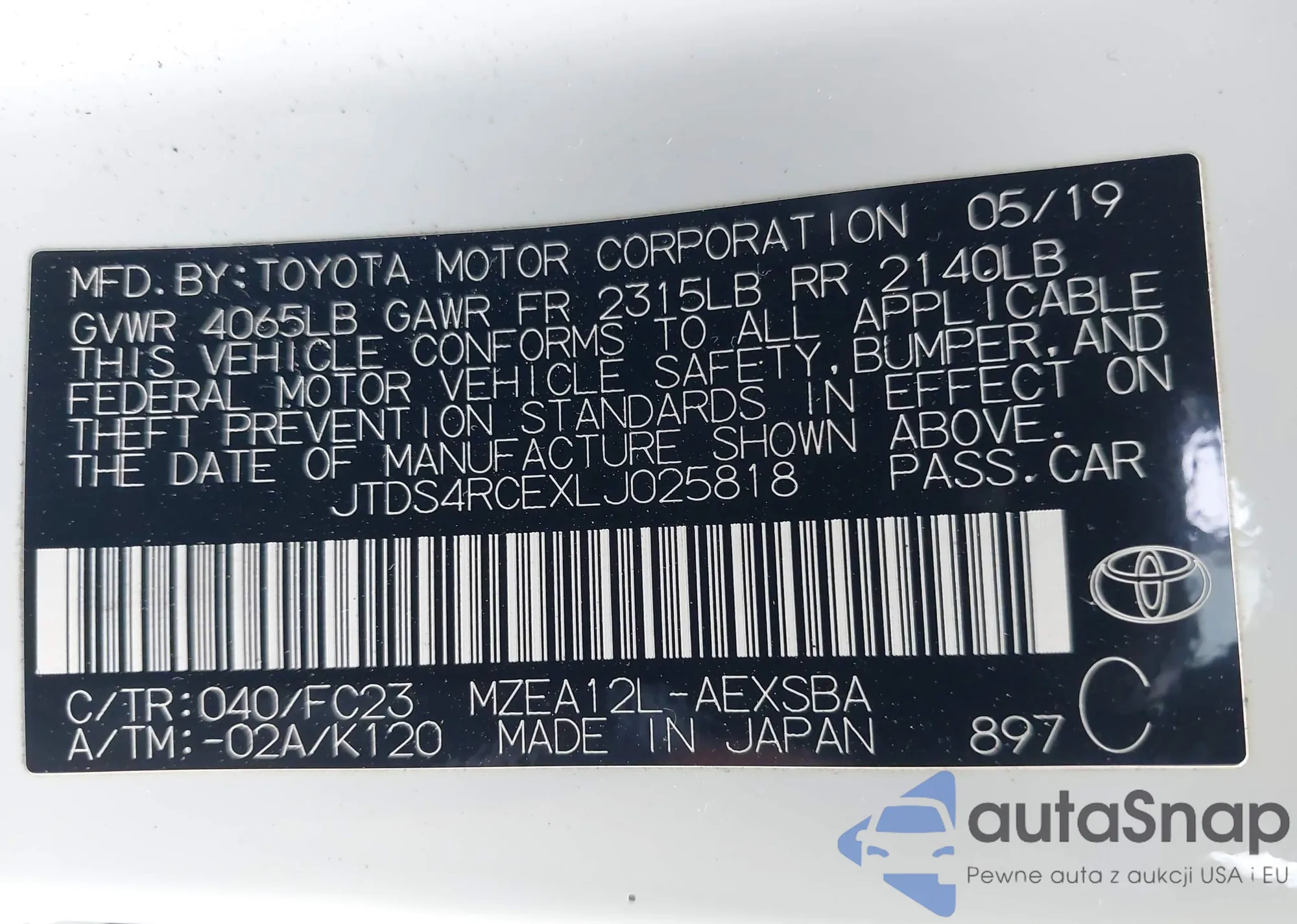 • VIN JTDS4RCEXLJ025818