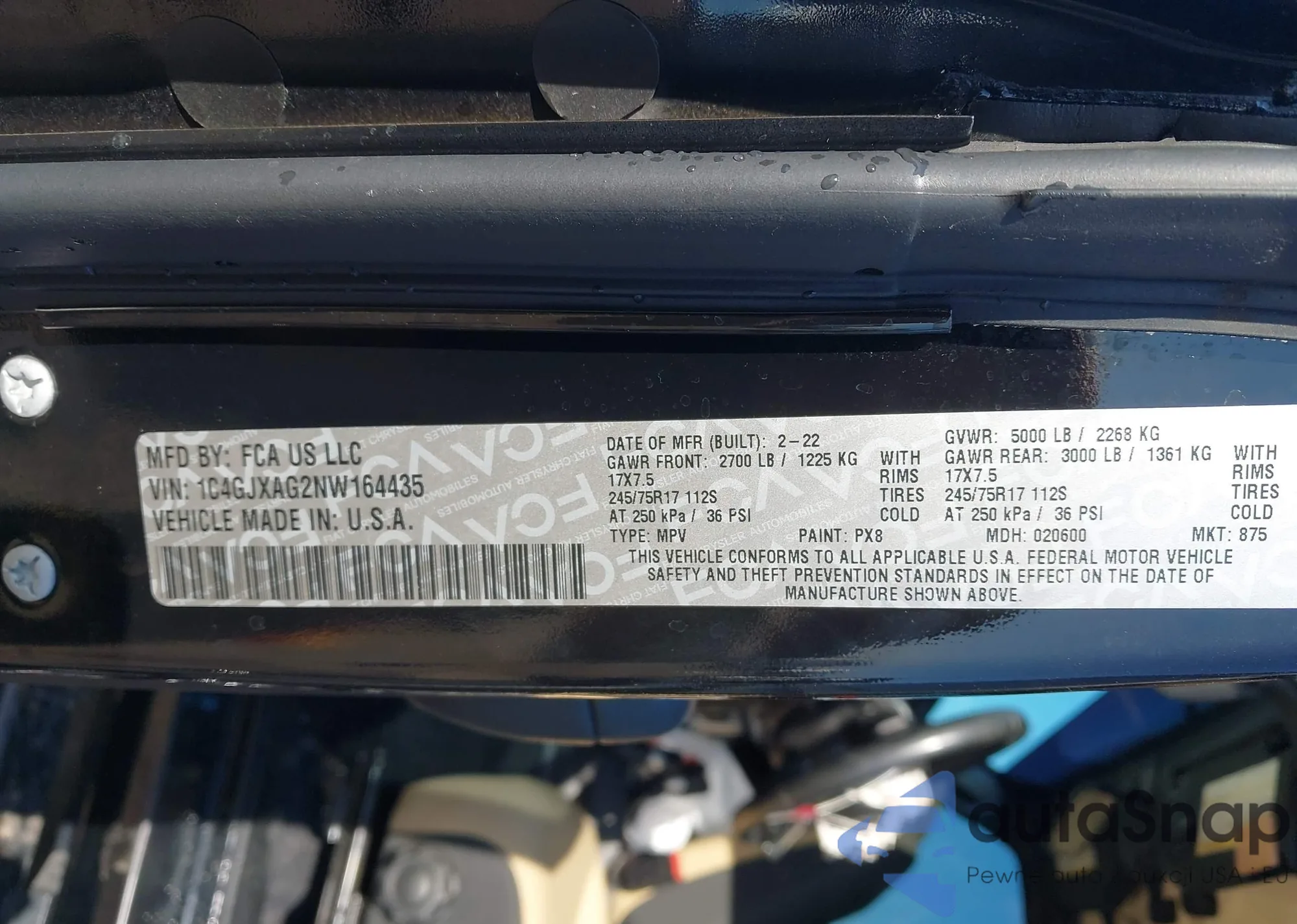 • VIN 1C4RJFBG6JC204335